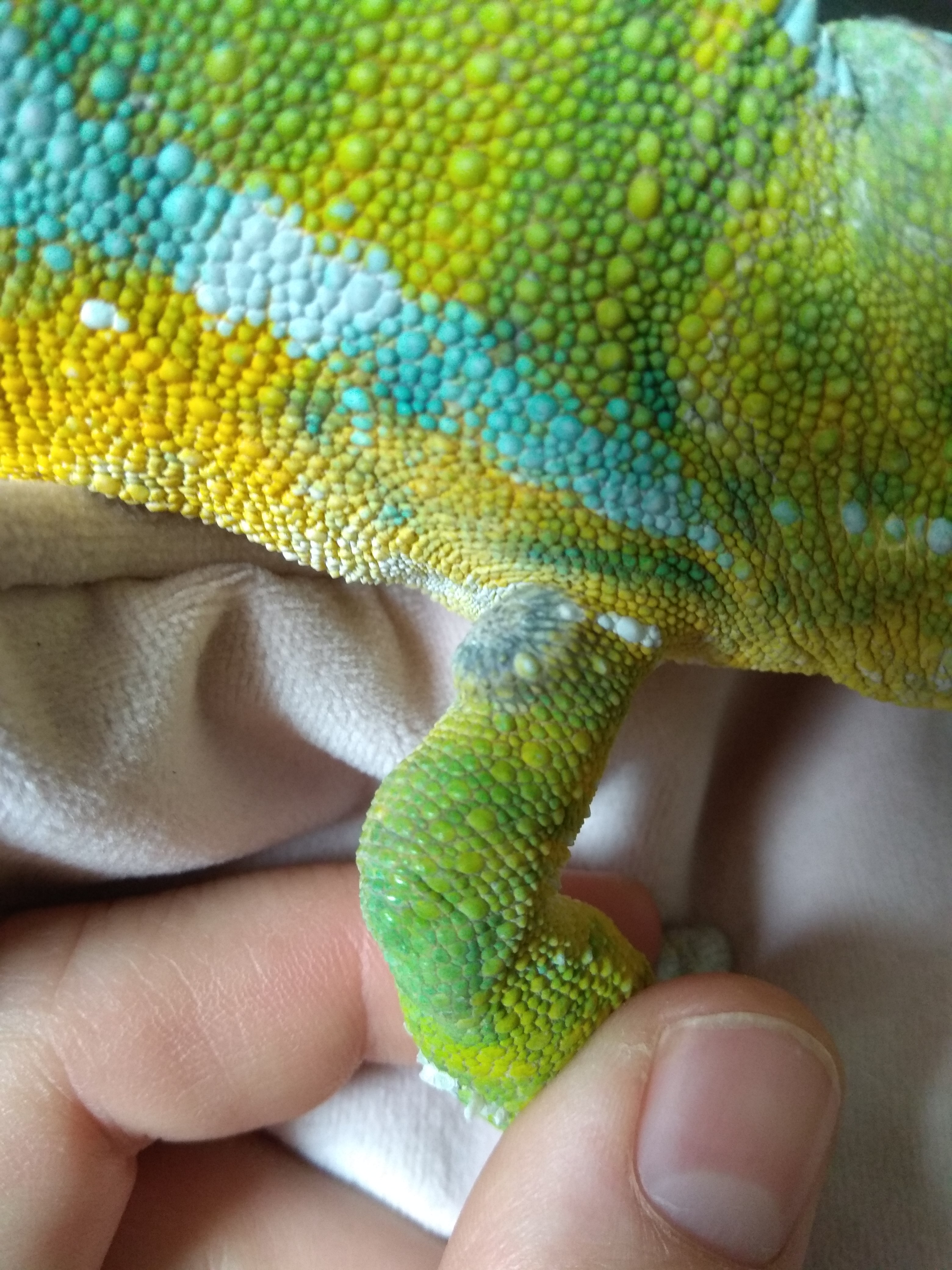 Dobrý večer, nepíšete, jak se to s boulí vyvíjí dál? Jestli je během těch měsíců stejná, má tendenci k růstu, změně zbarvení, chameleona "obtěžuje"? Podle obrázku bych soudila, že by se mohlo jednat o poranění (popálení), ale bez cytologického vyšetření je to jen slabý odhad. Hezký večer.