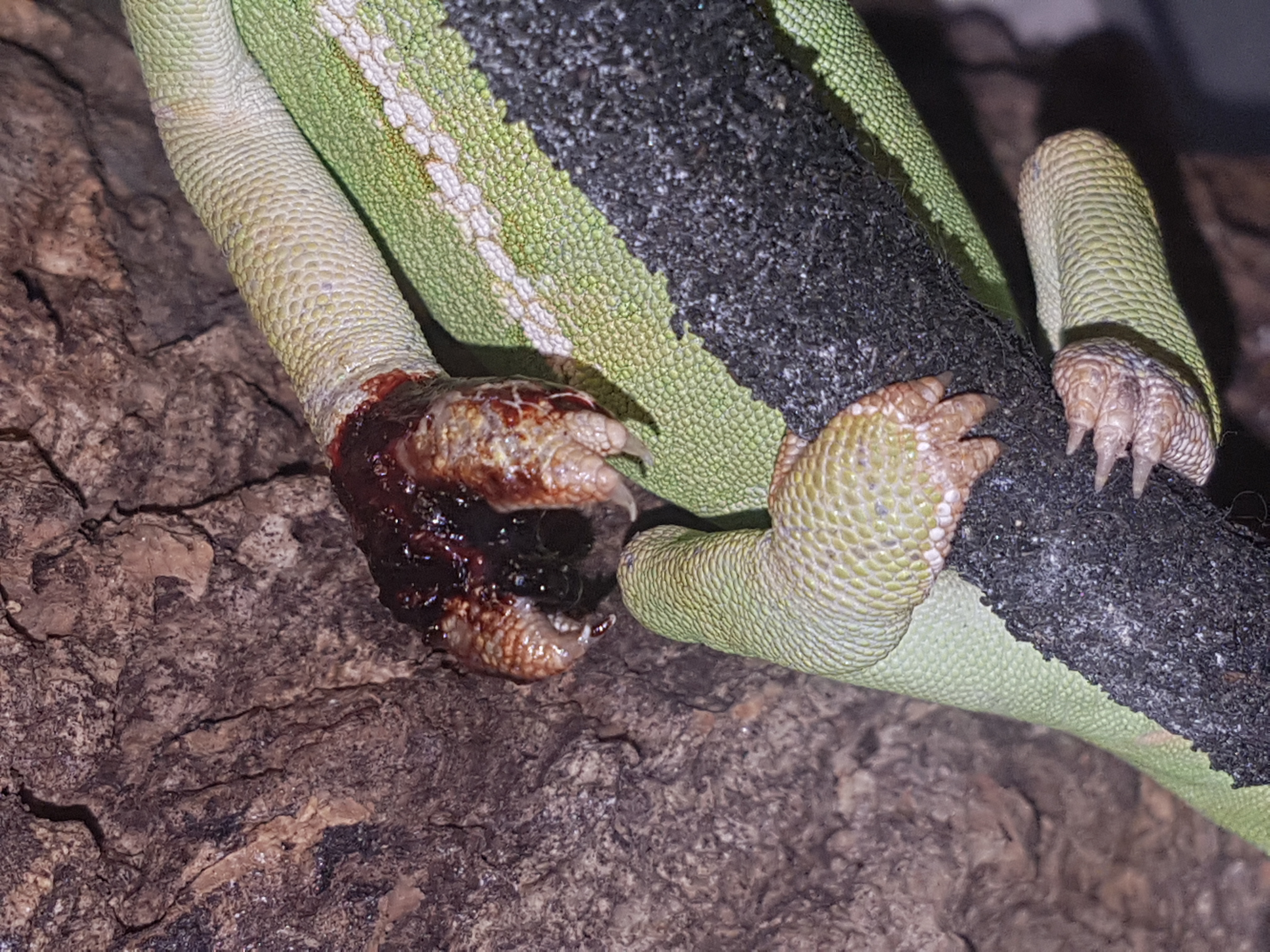 Dobrý den, našemu chameleonovi se udelalo tohle, viz fotka. Bohuzel nevime z čeho. Koupili jsme ji uplne zdravou, mame ji s dalsi samici a samcem. Mohli byste nam poradit, jak to vylecit? Děkuji