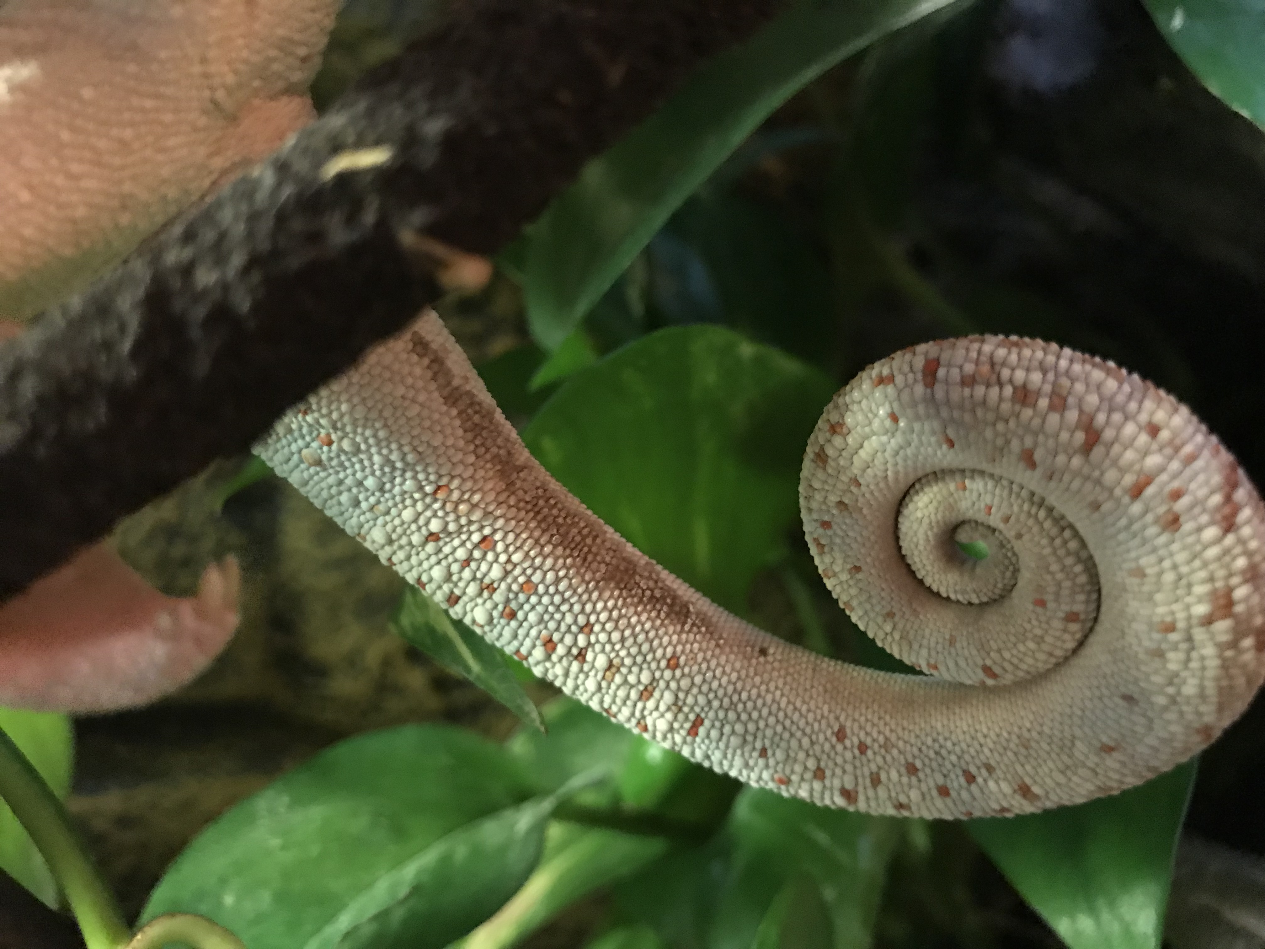 Dobrý den poslední dobou je můj chameleon málo barevný ..vypadá jako kdyby se měl svlekat ale je tak už cca 2 měsíce .Ma vyčištění terarko ,nové UVB žárovku ,normálně pije žere ...Jediné čeho jsem si všimla ze má na ocasu z vnitřní strany hnedy flek.. dekuji ze odpověď