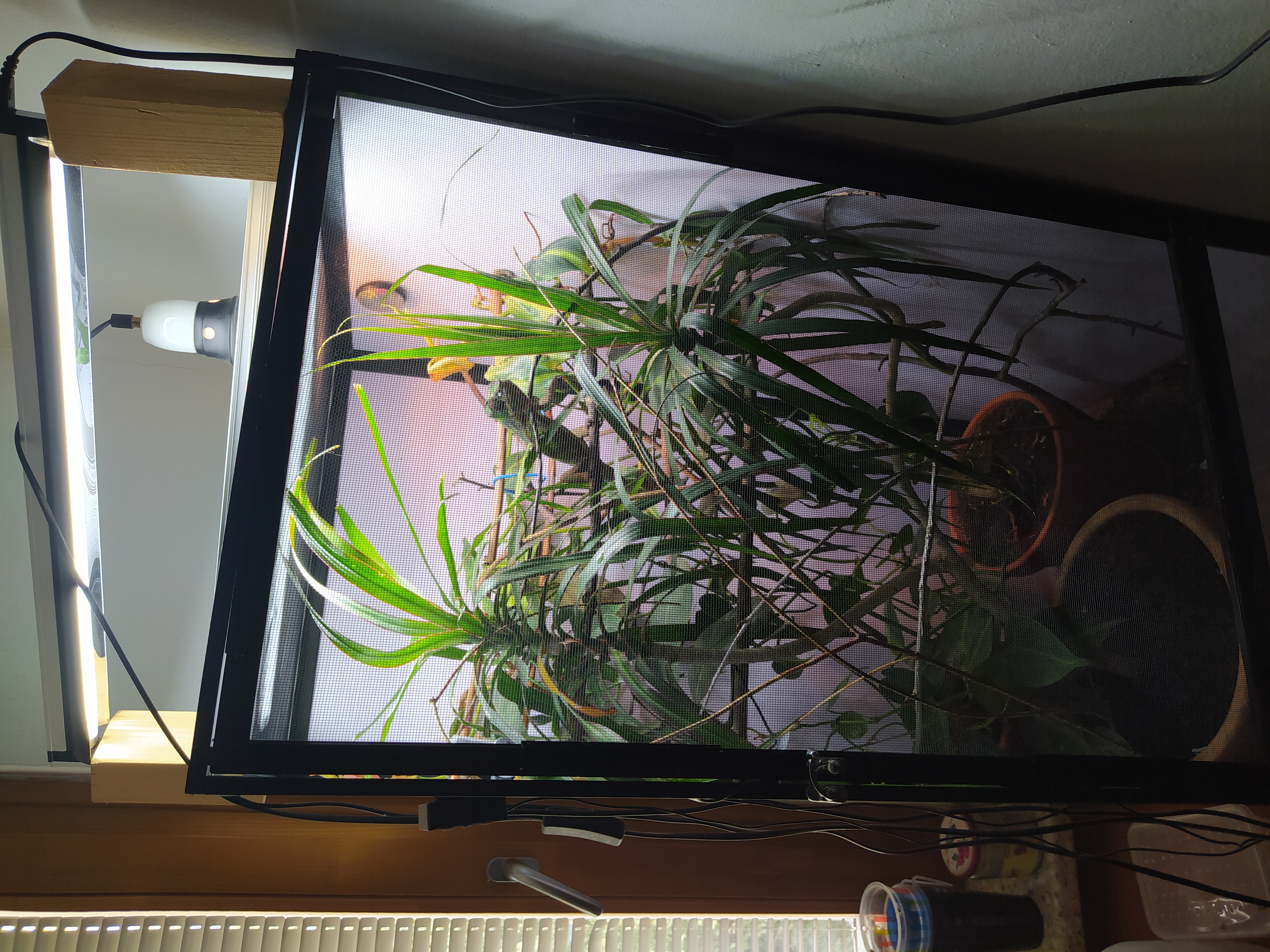 Dobrý den, chci se zeptat co mám dělat když chameleon přes den spí.Mám chameleona Pardálího a je mu 10 měsíců. Vlhkost přes den má 50-70, teplotu kolem 24%, bohužel to nejsem schopný víc vytopit. Cvrčký jí normálně. Za den jich sní tak 7.Cvrči jsou v pilu a pak je obalím ještě ve vápníku. Prosím poraďte mi co mám dělat.