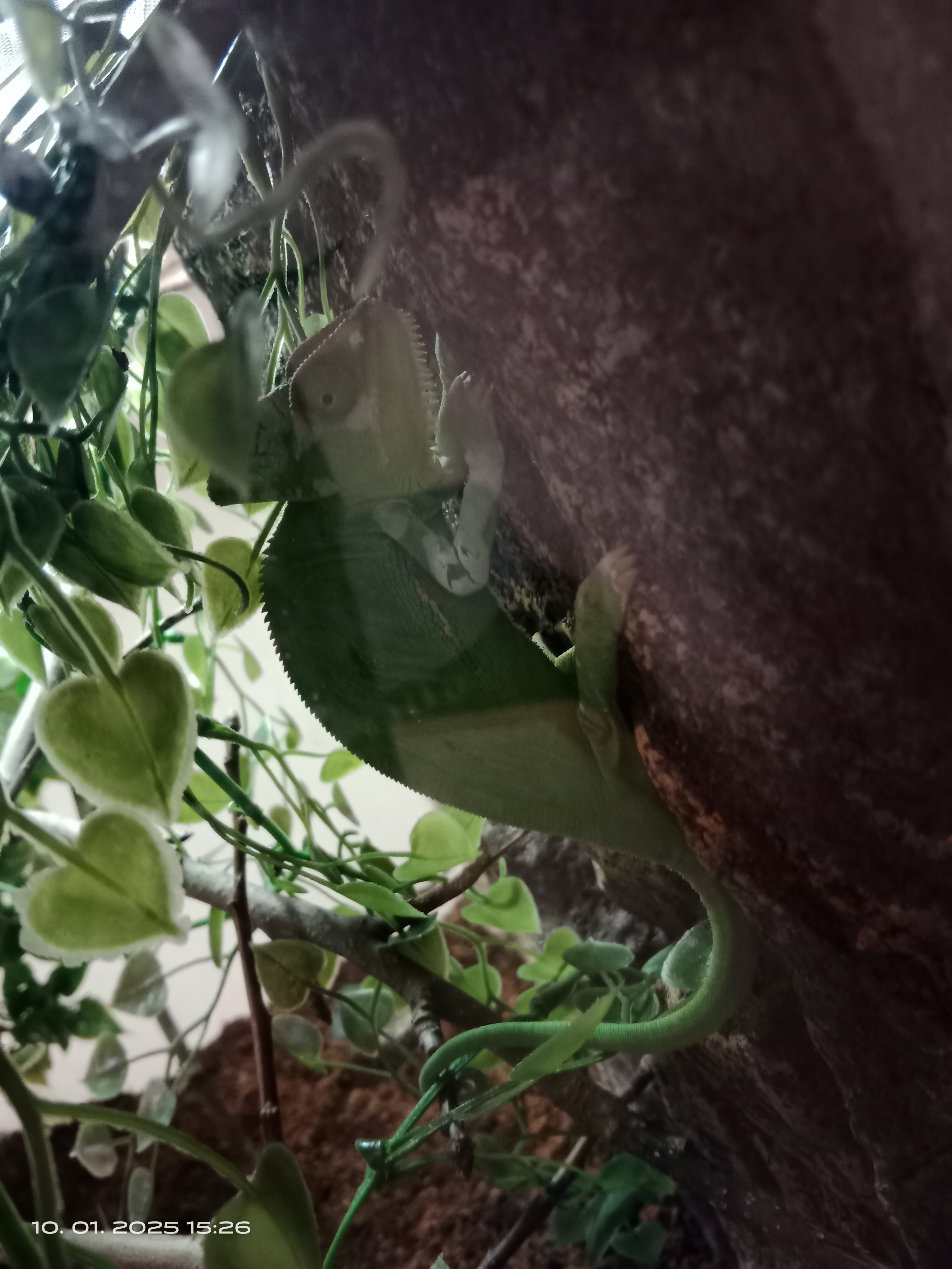 Můj chameleon má na sobě bílé fleky a zároveň se mu loupe kůže