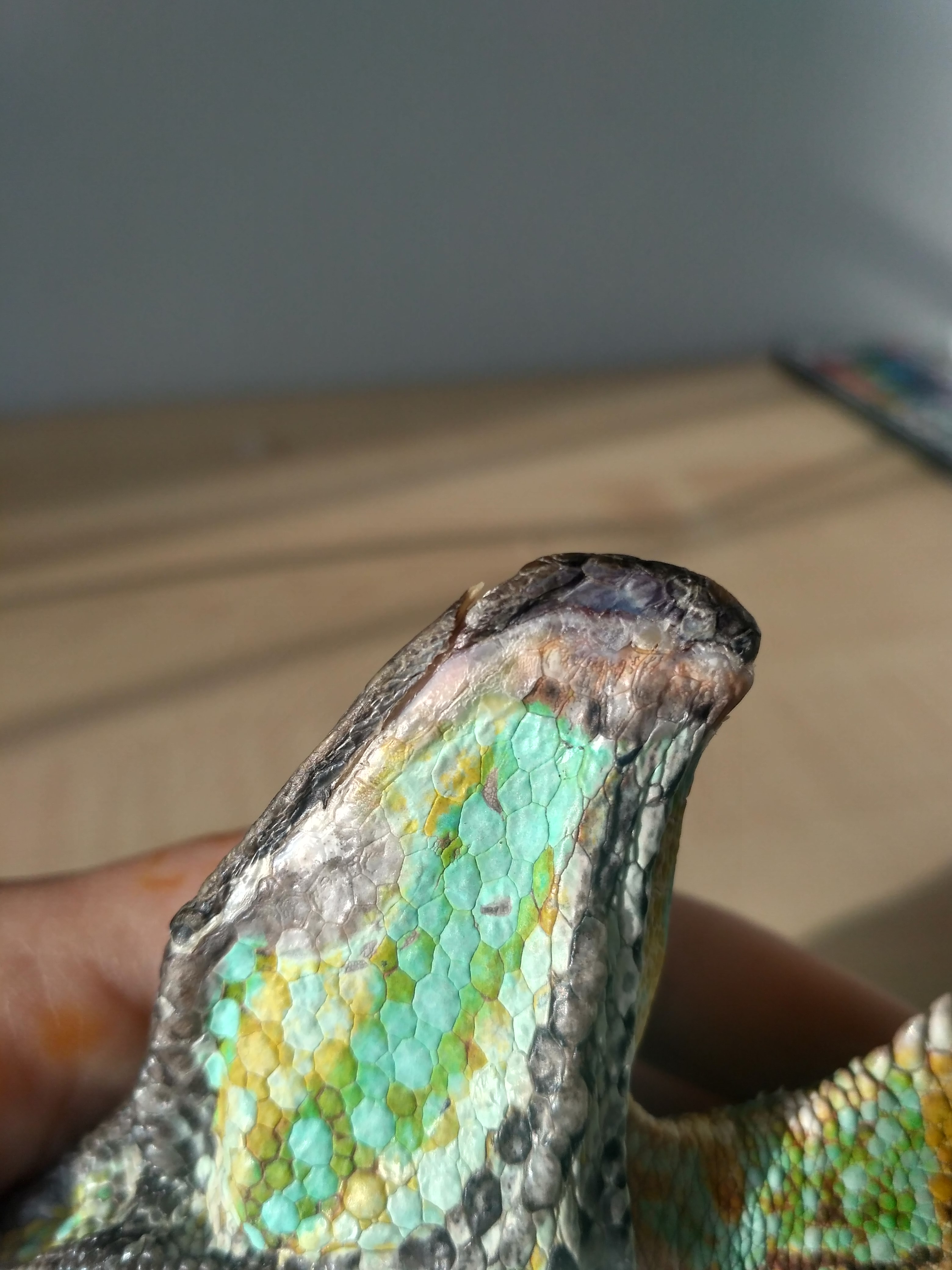 Dobrý den. Můj chameleon se nadávno spálil o lampu. Vše jsme dali tak, aby už se to znovu neopakovalo. Ale pořád se to nechce zahojit. Přikládám fotku a předem děkuji za odpověď .