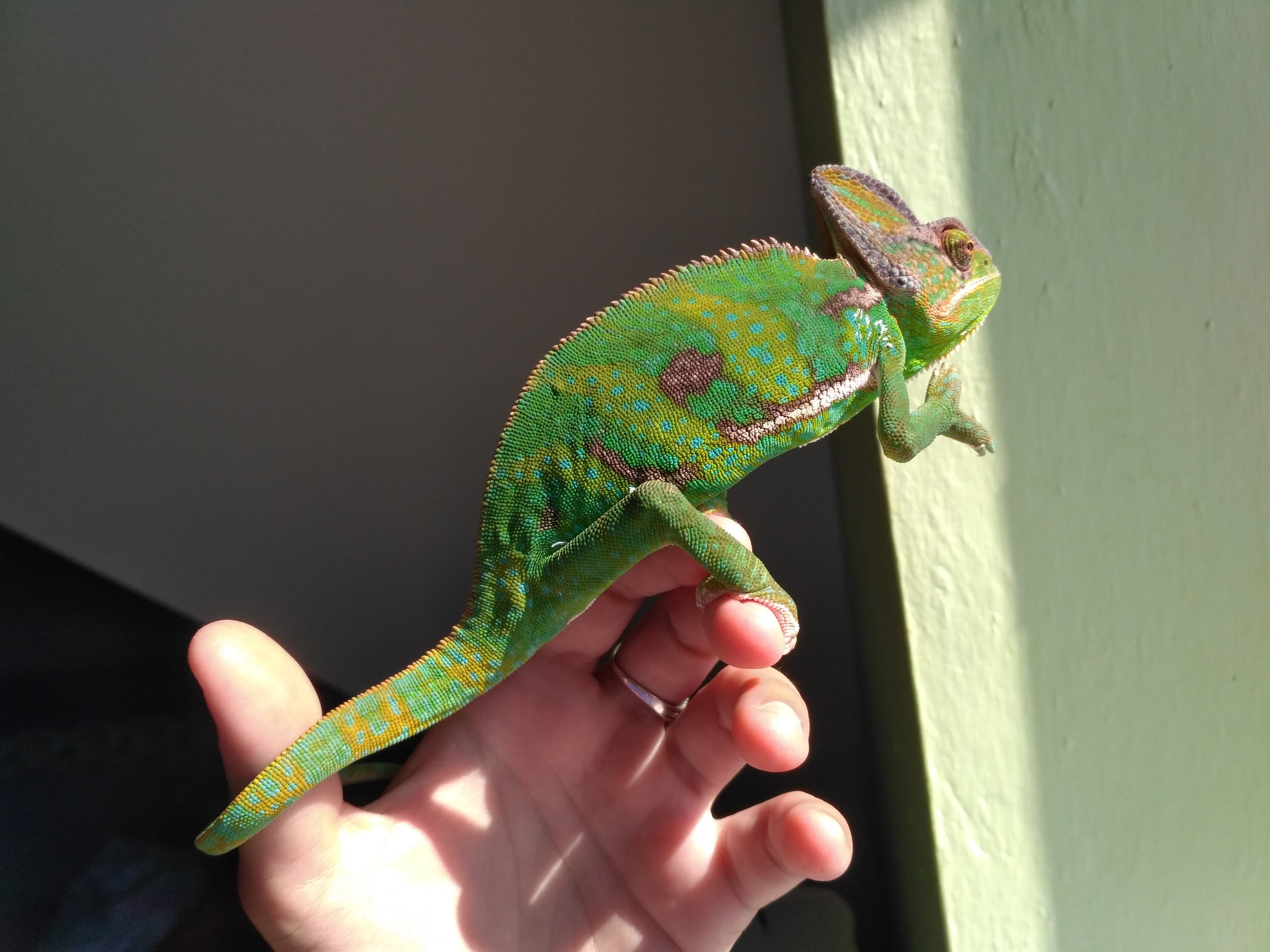 Hezký den, chtěla bych se zeptat, zda nějak léčit či pomoci chameleonovi když má na kůži spáleniny (tedy předpokládám, že to jsou spáleniny, má je na každé straně těla) a nebo mu nechat čas a rány se zahojí samy a nezasahovat do toho. Zároveň se chci zeptat, zda po uzdravení místa zezelenají nebo zbělají? Moc děkuji za radu