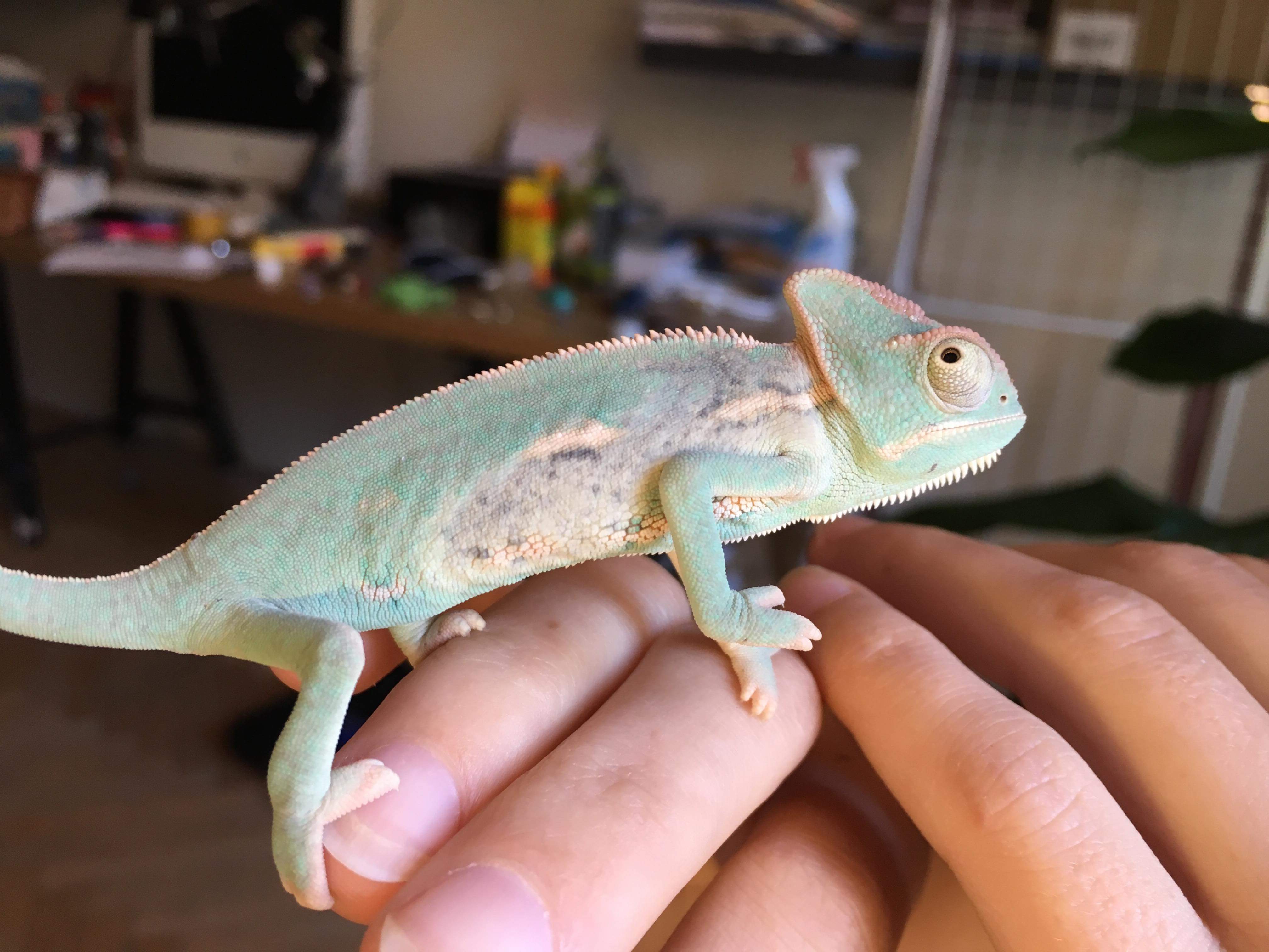 Dobrý den, Mládě našeho chameleona má asi dva dny šedivý pruh na boku. Jí normálně, kolem 5ti cvrčků denně. Podáváme i vitamíny. Pít ho nevidíme, ale rosíme 2x denně. Povrch kůže působí normálně. Mění to i barvu na tmavší nebo světlejší, ale stále šedé. Může to být plíseň? Nebo že by to byla součást jeho zbarvení? Nebo že by se začal svlékat? To jsme totiž ještě neviděli. Přikládám fotografii. Předem děkuji za informace a rady. Eliška Hanušová