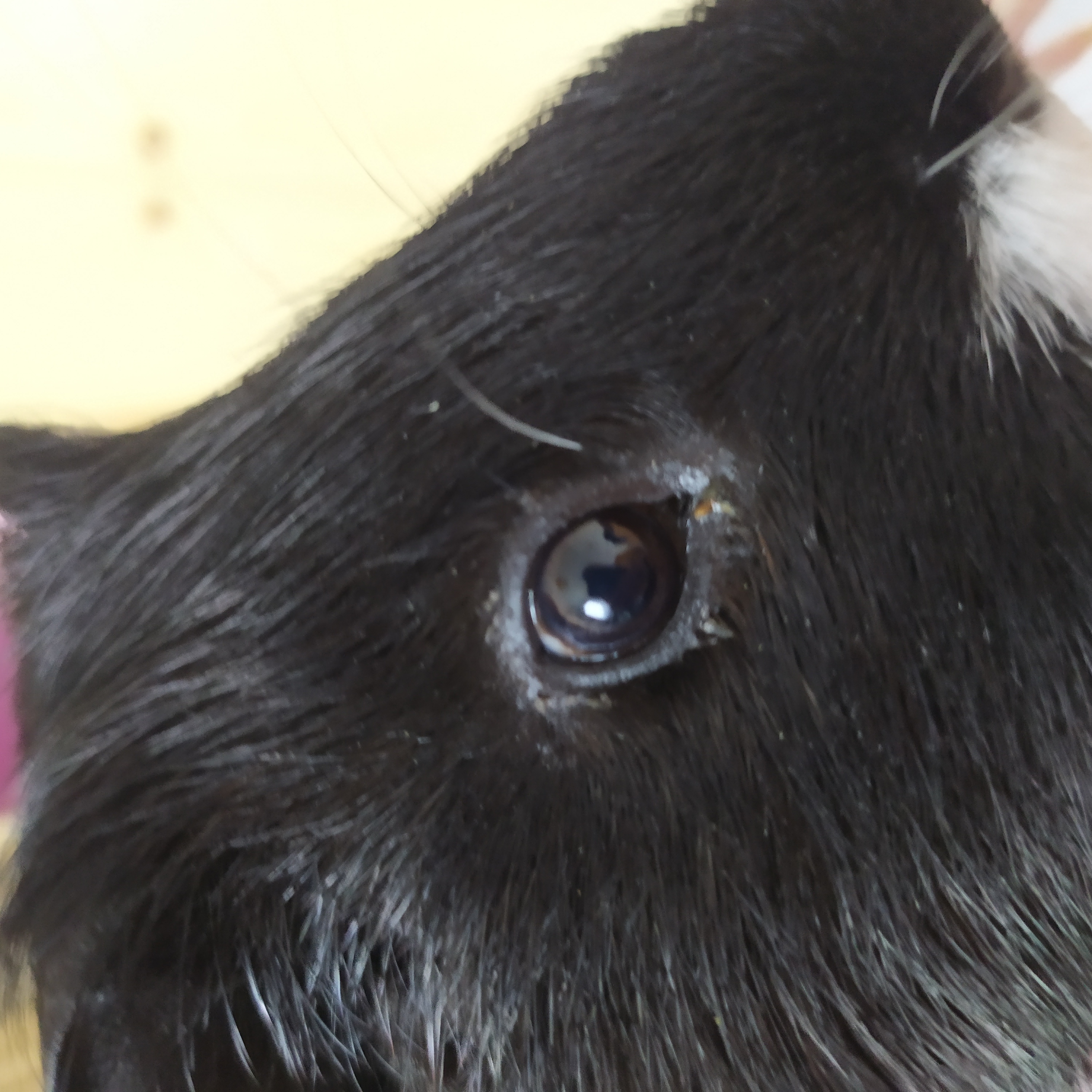 Hnisavý výtok z jednoho oka u morčete