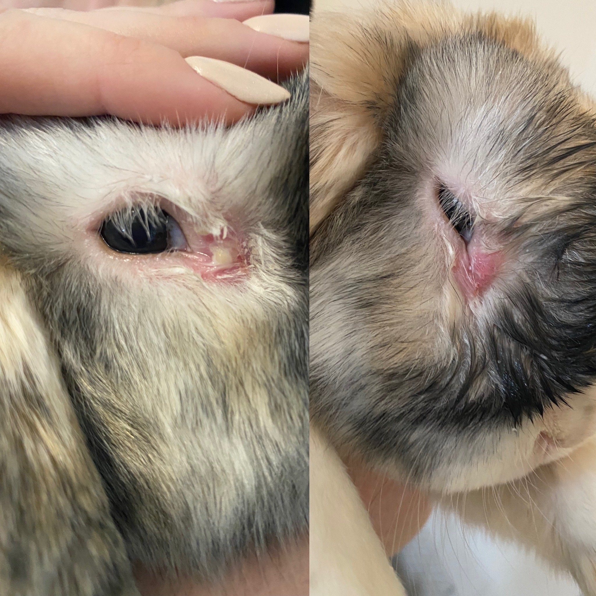Dobrý den. Vypadá to na hnis, doporučuji zajít na veterinu, na to nebudou stačit obyčejné kapky. S pozdravem MVDr Jančík.