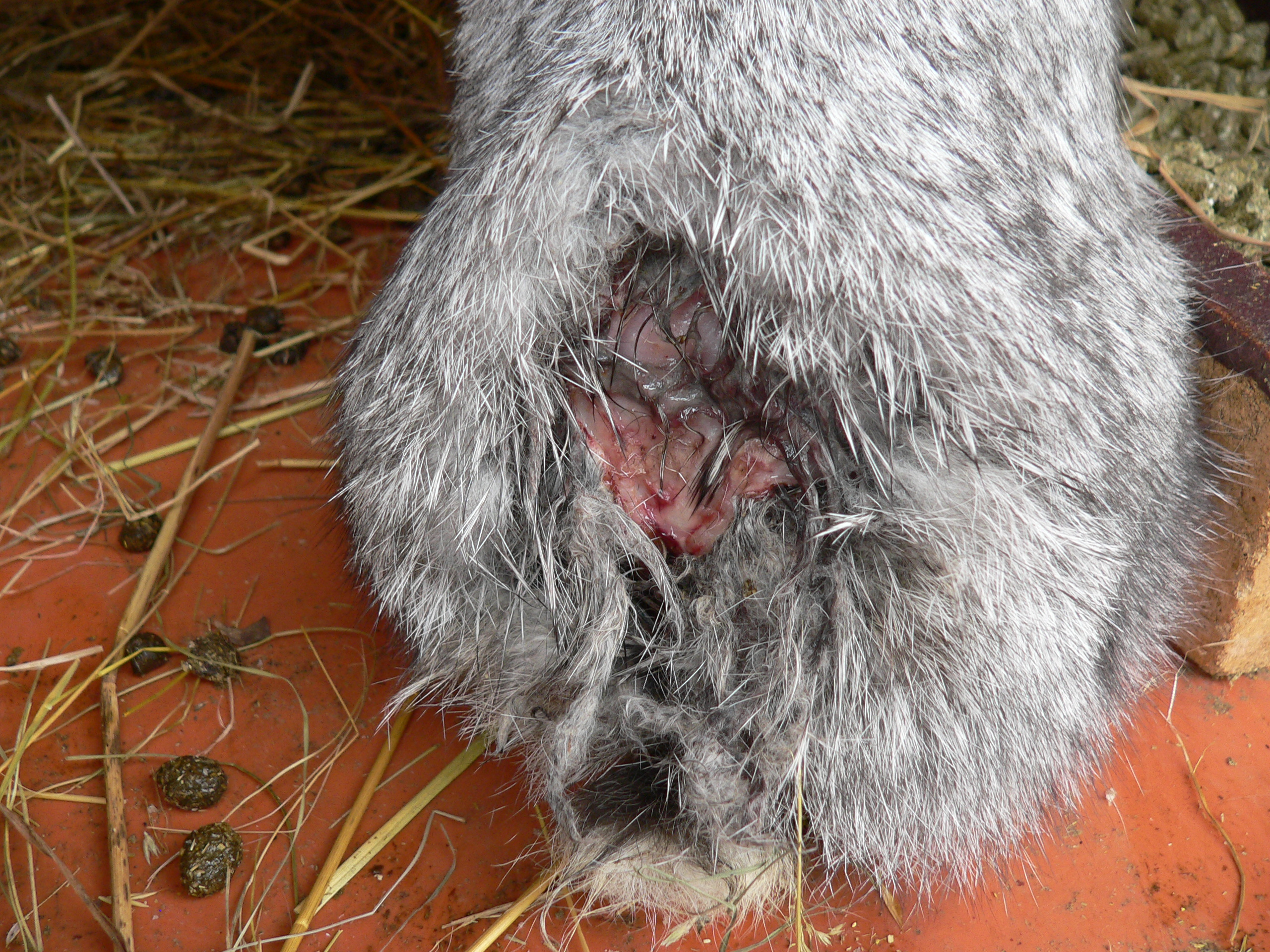 Dobrý den, na infekční záležitost to skutečně nevypadá, přikláněla bych se k traumatu , možná způsobenému i jiným králíkem. Neočkovali jste proti moru? Je to sice neobvyklé místo, ale nekdy to může stát. Králíka izolujte, ránu vydezinfikujte a jen to hlídejte ( mouchy) popř. aplikujte domácí hojivé prostředky. S přáním hezkého dne Monika Klimplová