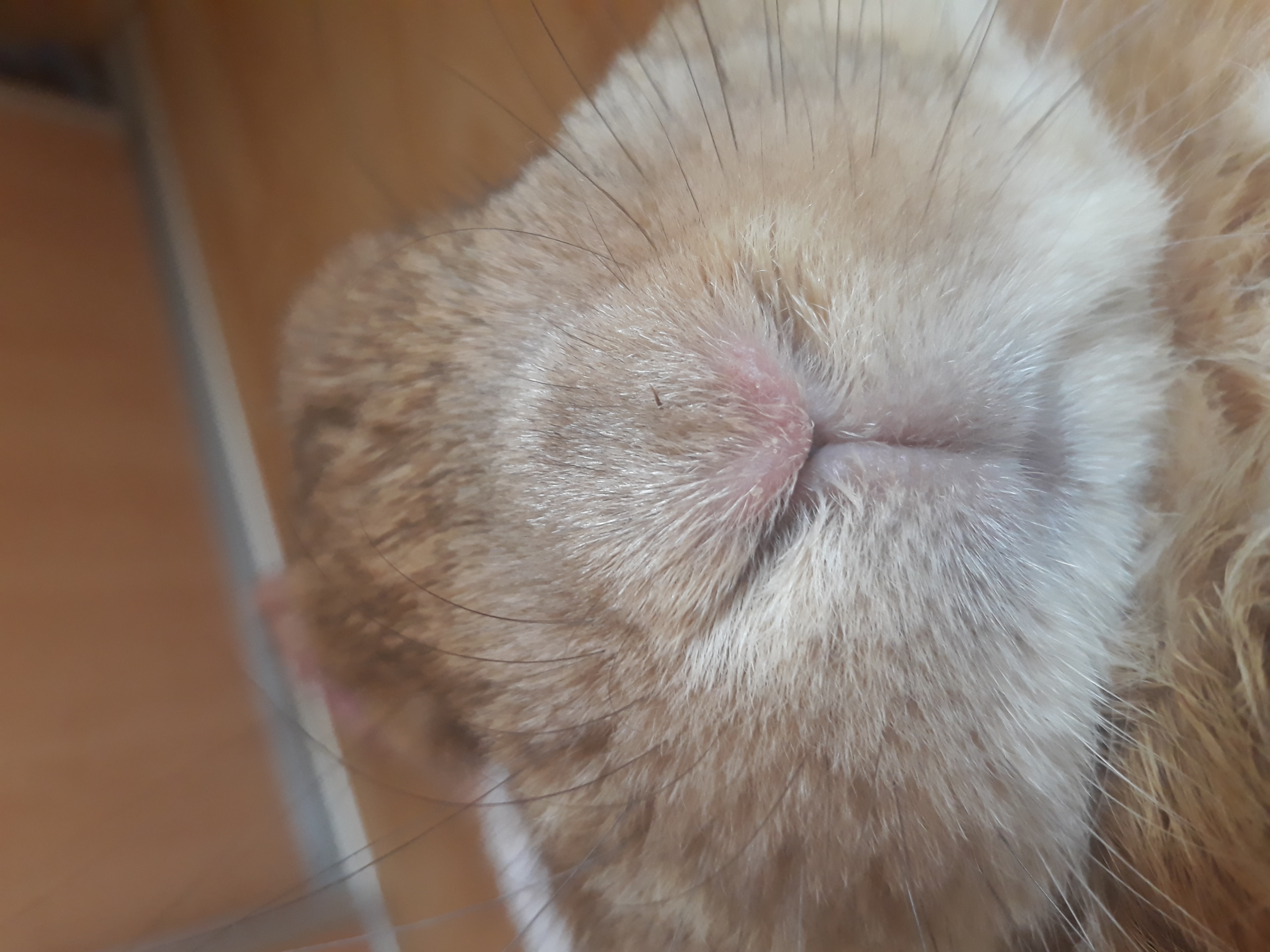 Hezký den, dnes jsem si všimla, že můj králíček (v prosinci 2018 mu budou 3 roky) má červený oteklý nos a na něm nejaké žluté částečky. Vypadají jako od parazita. Nic jiného jsem nezpozorovala. Chuť k jídlu normální, uši v pořádku. Nos má na dotek citlivý. Co by to mohlo být? Děkuji