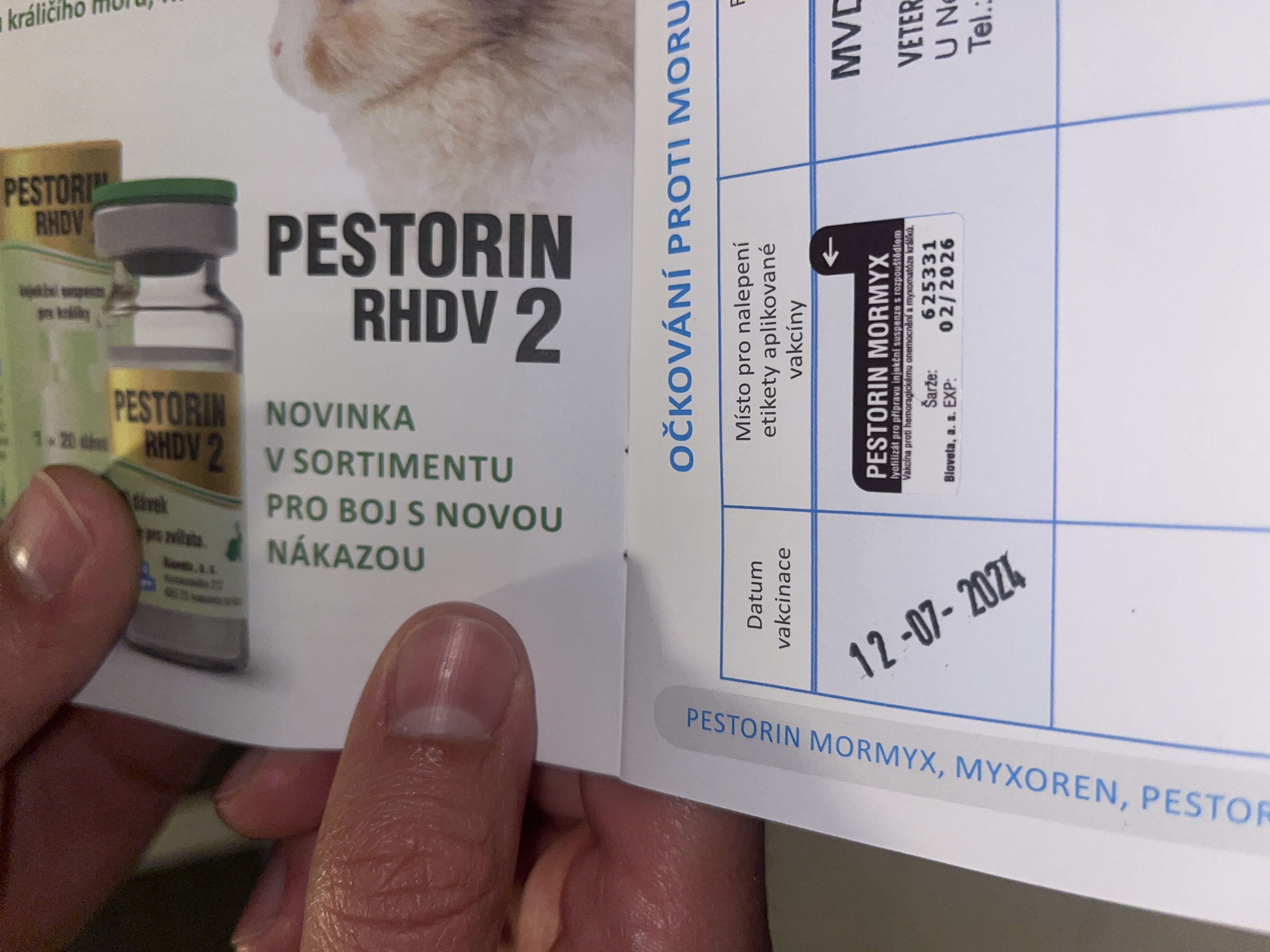 Očkován byl do zad. Starý je 10 týdnů a byl očkován touto vakcínou.