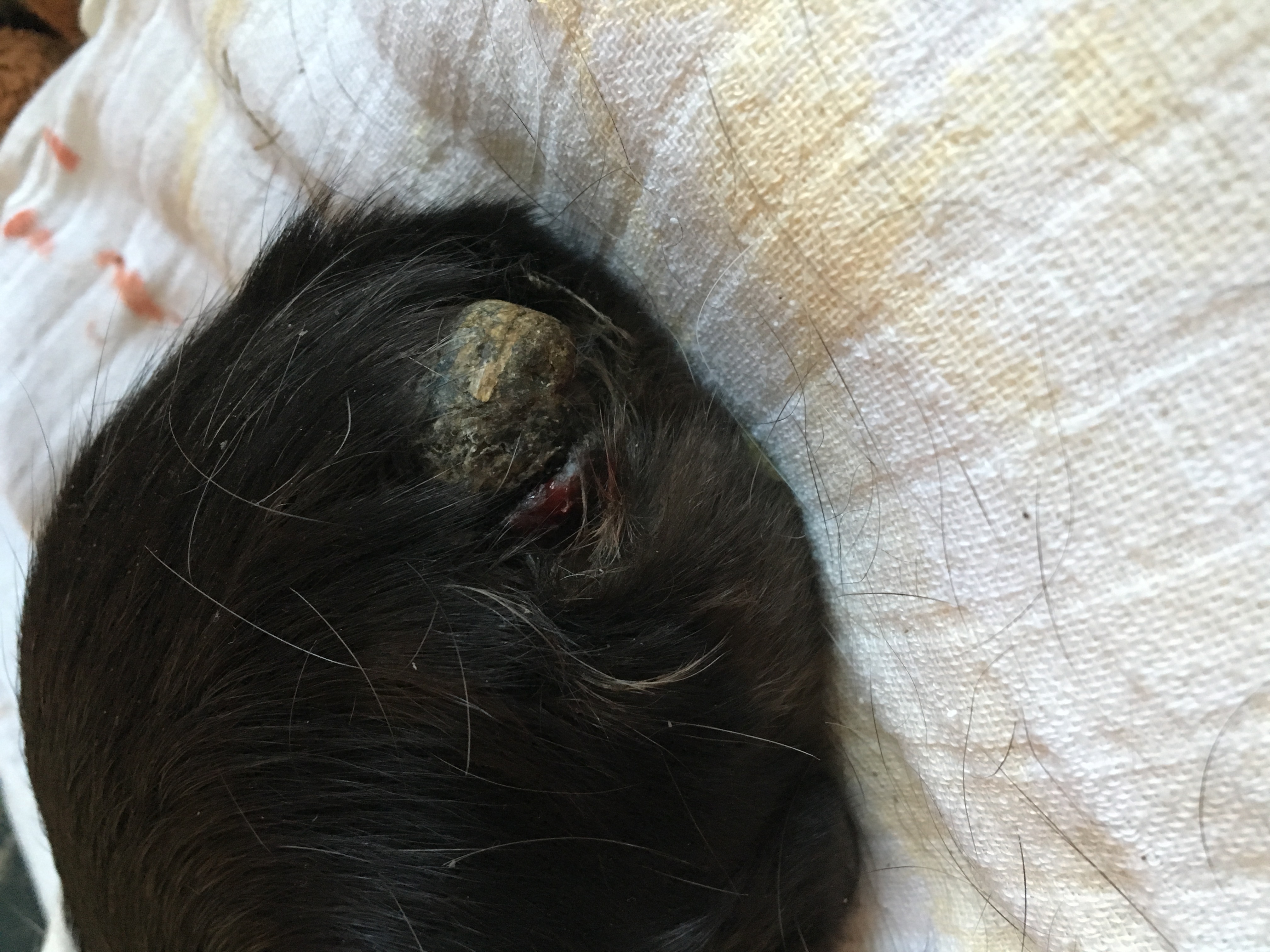 Dobrý den, na zadečku mého morčete se vytvořit jakýsi ,,strup". Na pohmat je to tvrdé a suché, jen část vlevo je taková měkčí. Morče nijak neomezuje, běhá, jí a dělá všechno jako předtím. Včera mu z toho trochu tekla krev (z té levé části). V příloze Vám posílám obrázky postiženého místa a zároveň Vás prosím o radu, co s tím máme dělat a co by to vůbec mohlo být. Děkuji moc za odpověď.