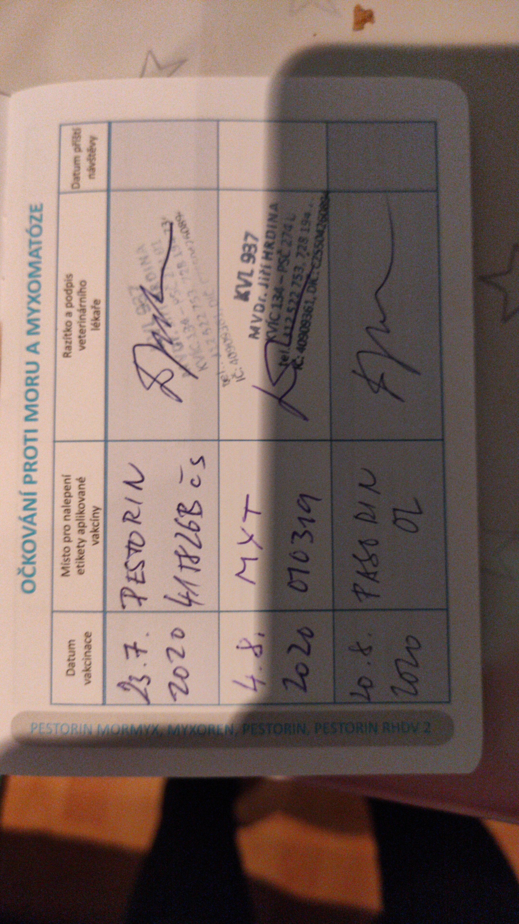 Dobrý večer, koupila jsem nám králíčka a paní nám poslala očkovací průkaz, ve kterém je očkování v době kdy už byl králíček 7.dni u nás a ještě bez razítka veterináře?? Paní jsem na to upozornila a tvrdí mi že razítko veterináře tam být nemusí
