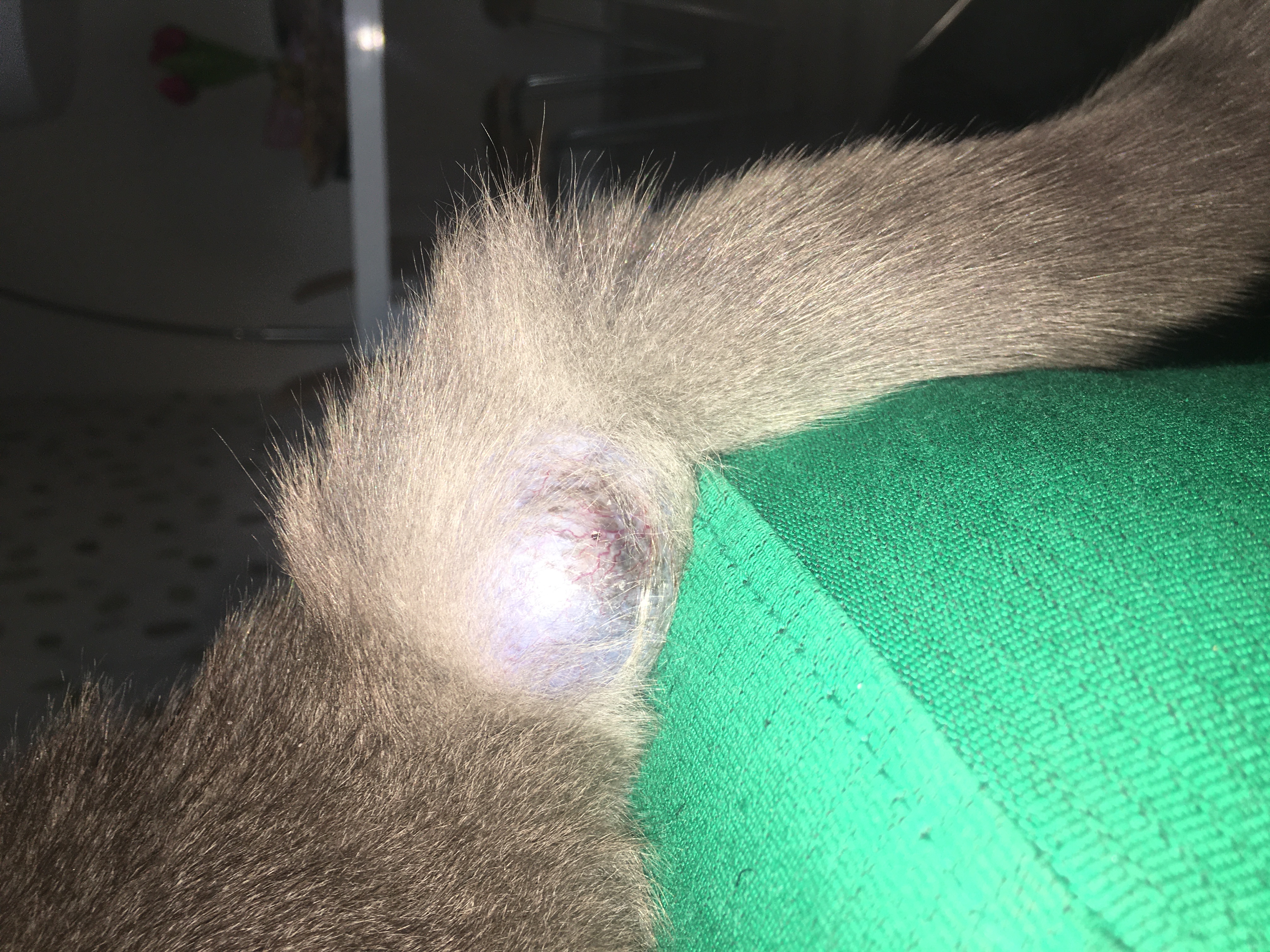 Dobrý den, naši britské kočce, cca 13-14 let, se zhruba před půl rokem objevila pod ocasem bobule, boule se nyní rapidně zvětšila... kočku nebolí, je lehce mekka na zmacknuti... posílám foto. Nerada bych kočičku v tomhle věku operovala, kvůli narkoze... můžete mi prosím říct, o co asi jde a co nás čeká? Dekuji