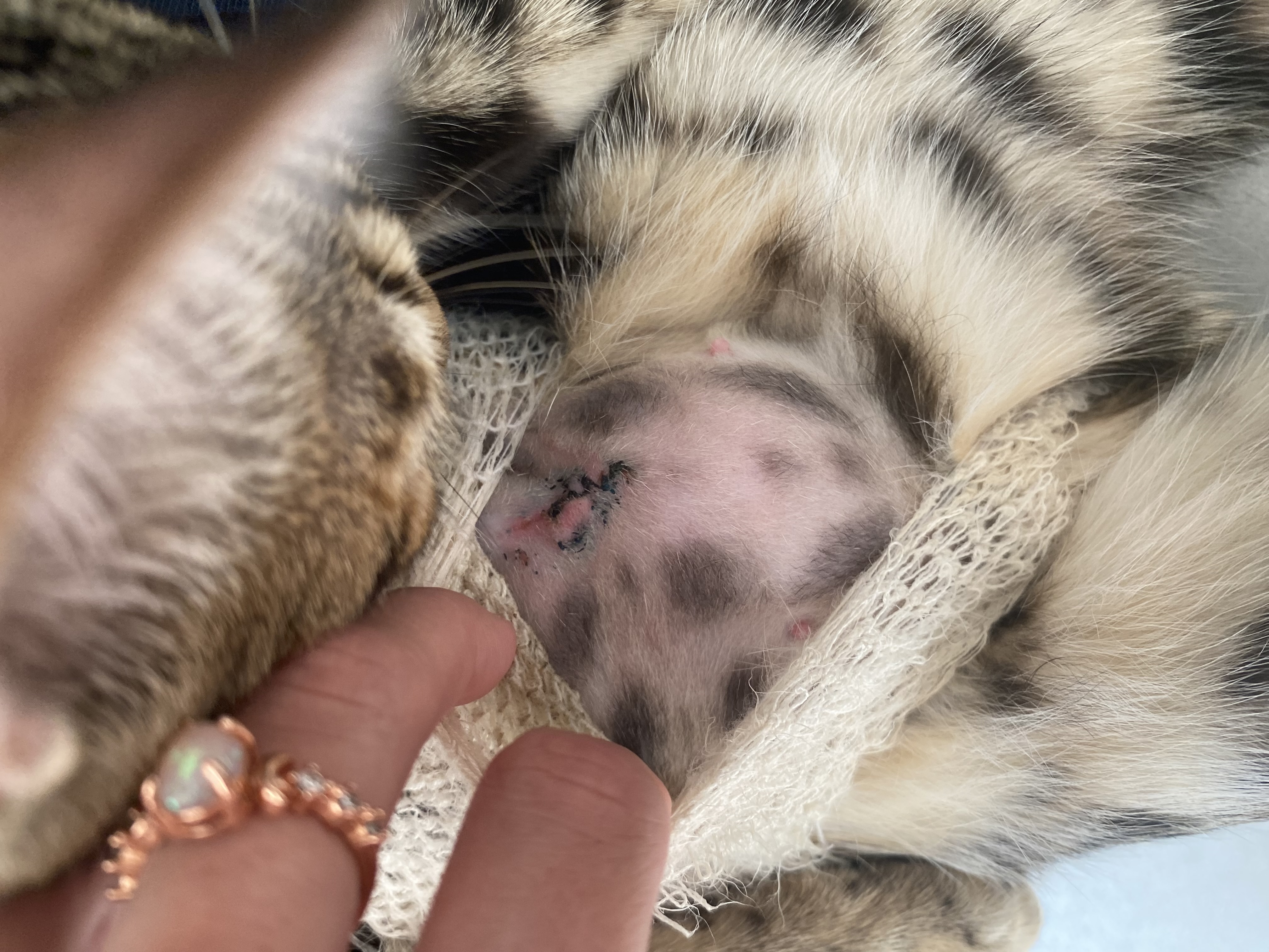 Dobrý den, moje kočička Liči byla před čtyřmi dny na kastraci. Od zákroku je trochu klidnější než obvykle – víc spí a jen drobně si hraje, ale jinak normálně jí, pije a chodí na záchod. Rána vypadá v pořádku, není otevřená, jen na jedné straně je lehce zarudlá – minimálně. Nesmrdí, nemokvá. Liči má stále obleček, který ji ale dost štve – často se ho snaží lízat a okusovat, i když si přímo na ránu zatím nedosáhne. Pod ránou se jí vytvořila měkká boule na břiše, která není bolestivá, ani se nezvětšuje. Chtěla bych se ujistit, zda je tohle všechno běžný průběh hojení po kastraci nebo je třeba zajet k veterináři na kontrolu?