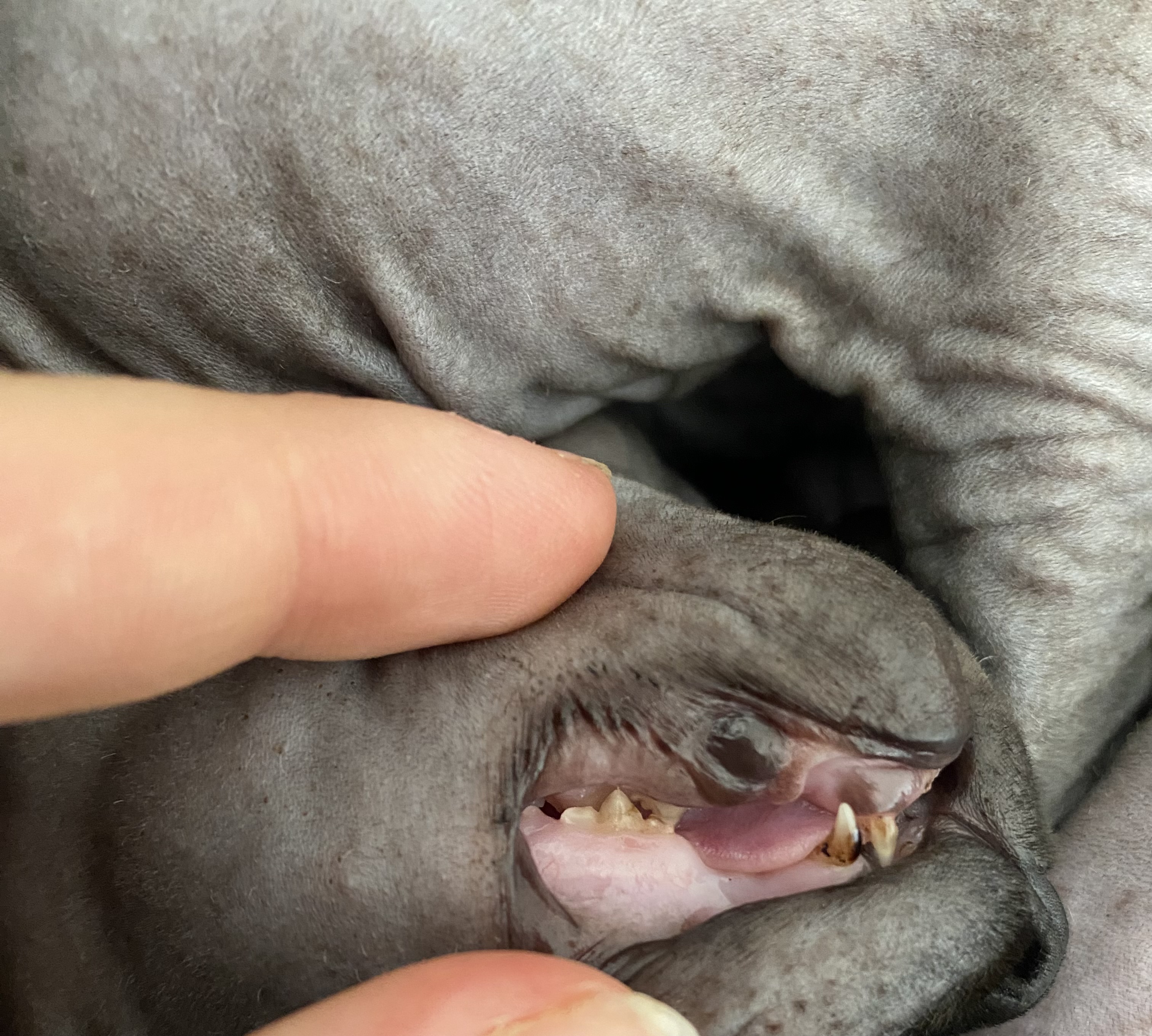 Dobrý den, paní Kujalová, mělo kotě antibiotika? Třeba u chovatelky? Pokud ne, tak se jedná o častý jev u tohoto plemene sfinx a je to z toho, jak se olizují - čistí se, tak se jim na zubech ukládá plak. Má to spojitost s genem, který způsobuje, že nemají srst. Naučte čistit zuby - enzymatickou pastou a mělo by to být lepší.