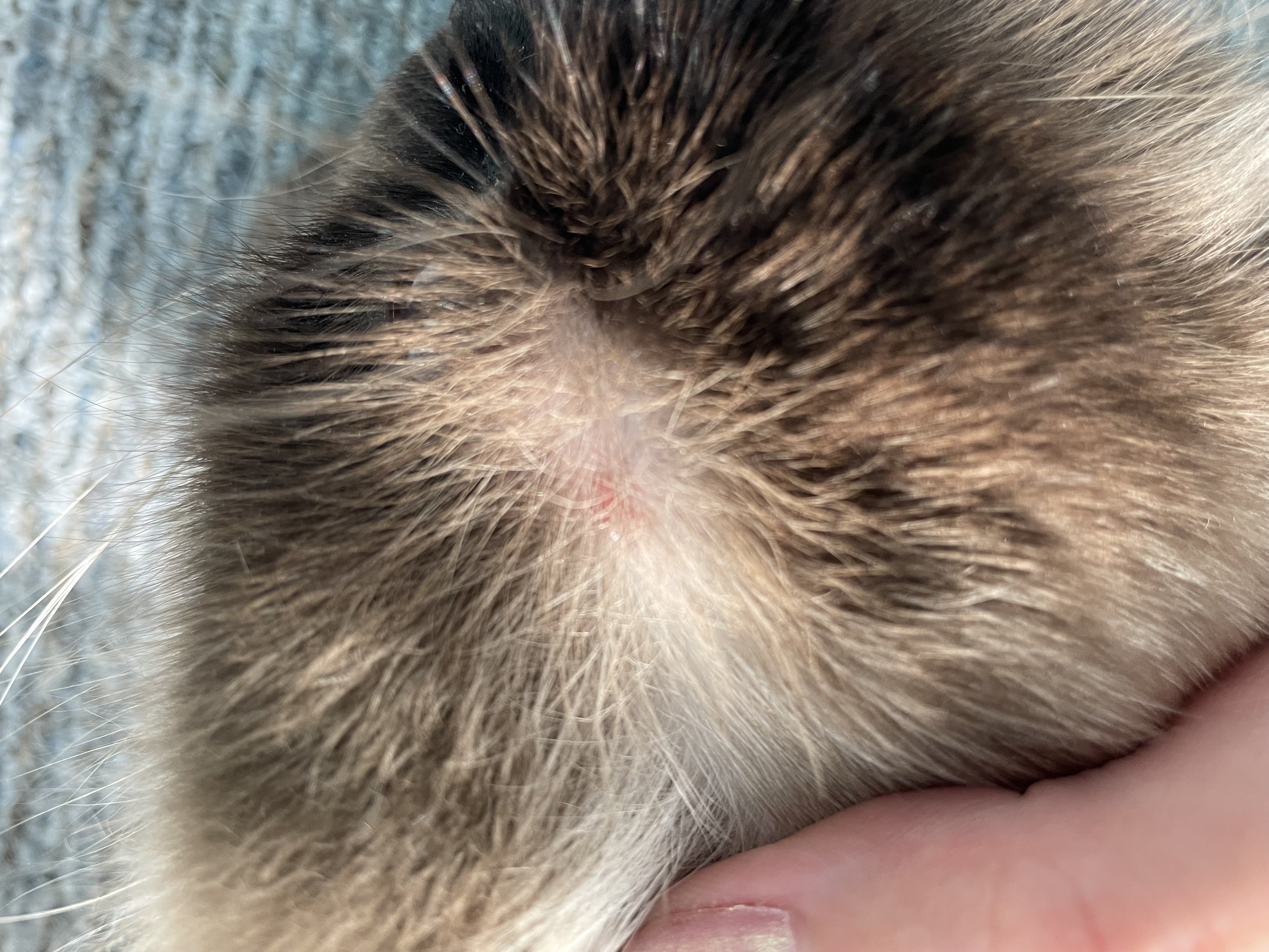 Dobrý den, moje čtyřletá dlouhosrstá kočka (oříšek) má delší dobu řidší srst nad okem, dnes jsem na tomto místě objevila červené (podkožní) flíčky. Můžete z fotky poznat, o co se může jednat? Veterina mi nebere telefon a máme ji hodinu a půl z domova, tak nechci kočku stresovat jízdou autem v horku, jestli to není opravdu důležité (infekce?). Děkuji