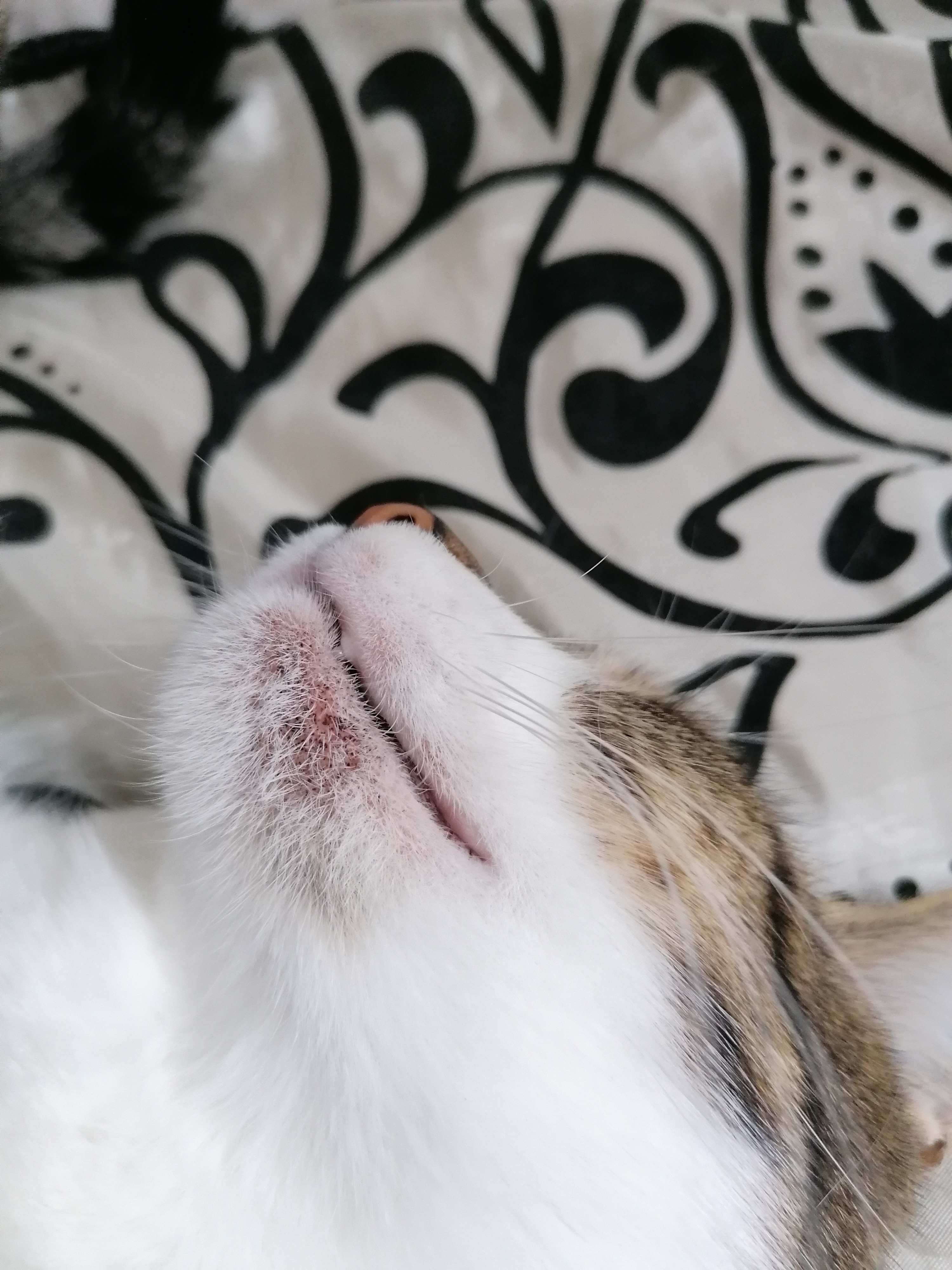 Dobrý den, chtěla jsem se zeptat co to může být? Má to jen u pusy, nikde jinde. Byly jsme asi před 2 dny u veterinářky na očkování, ničeho si nevšimla. Kocourek, akorát měl lupy, koukala i pod mikroskop a paraziti neměl. Tak nechápu co to má. Předem děkuji za odpověď
