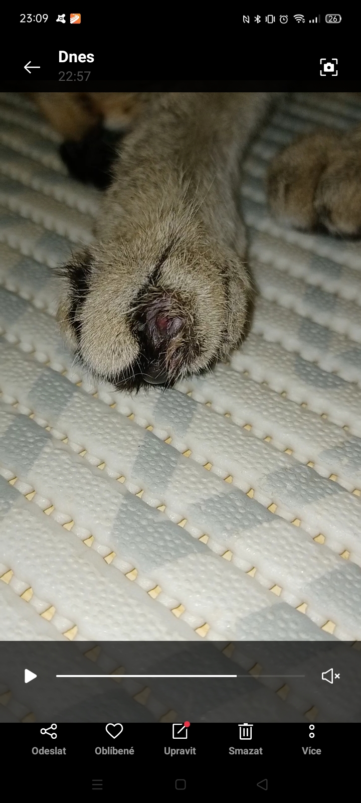 Dobrý den, píší s velkou prosbou... Moji kočce Bou najednou upadl celý dráp, paní vet potom našla další 2 uvolněné a odstranila je. Na obouch zadních packách má nějaké krvavé prsty po upadnutí.. Je jen domácí kočka...byla sem u vet. a mame antibiotika a Meloxidyl ... Za 10 dní kontrola... Nevíte proč by to mohlo být prosím, mám strach aby to nebyla rakovina je to možné? kočka se jeví v pohodě drbe se, má chuť k jídlu a přední drápy jsou v pořádku, dotek bolestivý, moje vet netuší... děkuji Charvátová