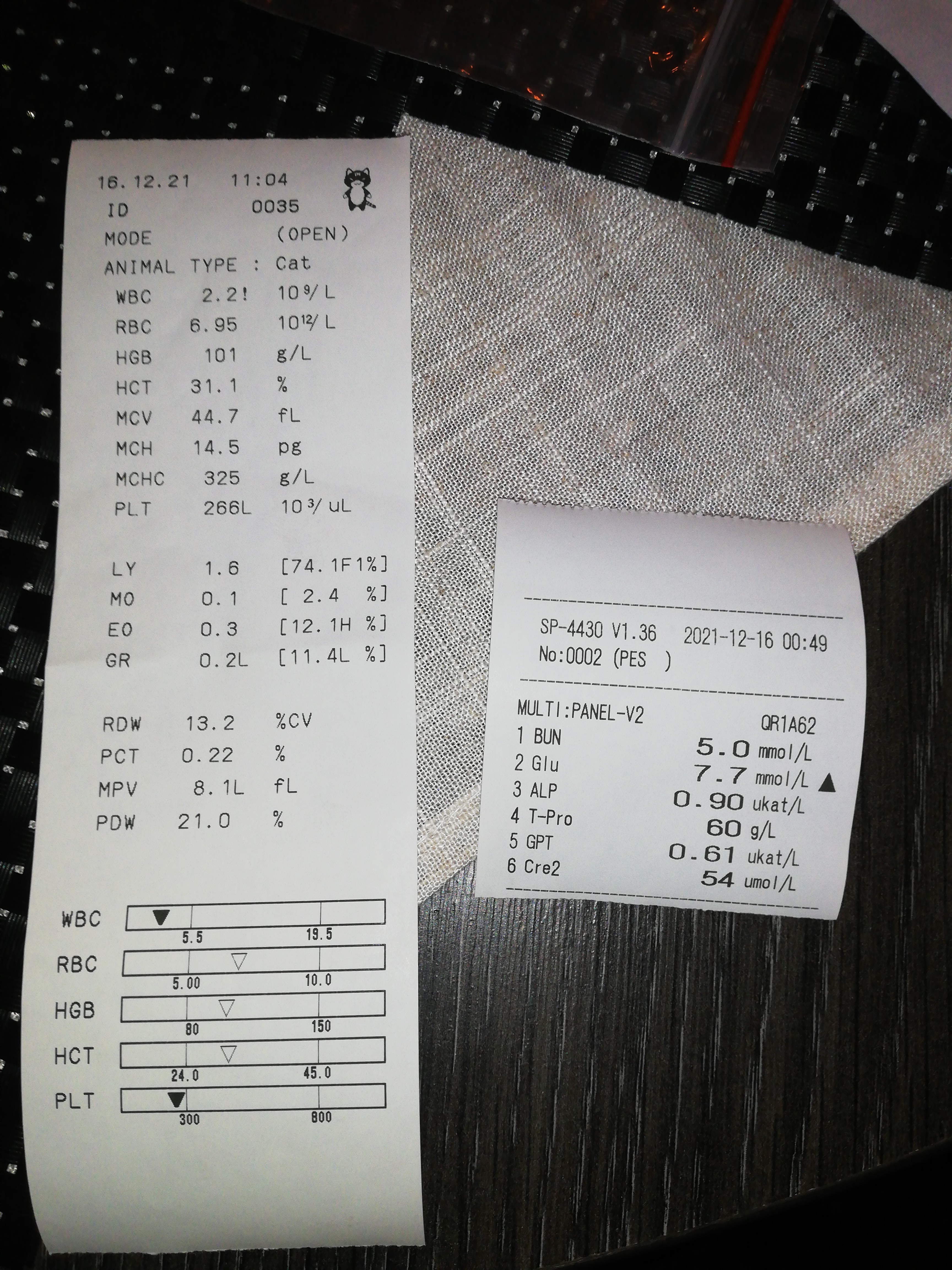 Dobrý den, dnes kočce byly zjištěny tyto hodnoty krve , posílám v příloze. Verdikt byl pokles bílých krvinek. Příznaky ztráta chuti k jídlu, apatie, vyhledávání samoty. Kočce je 9 let. Horecka 40,2.Pani doktorka ji píchla Atb, něco na bolest a něco pro chuť k jídlu, další atb obden. Celou dobu jsem kočky stav prisuzovala k zubům na kterých má zubní kámen, ale to mě bylo vyvraceno, že tohle nezpůsobuji zuby. Jak můžu více pomoci kočce, vitamíny, nebo co mi prosím poradíte. Děkuji předem