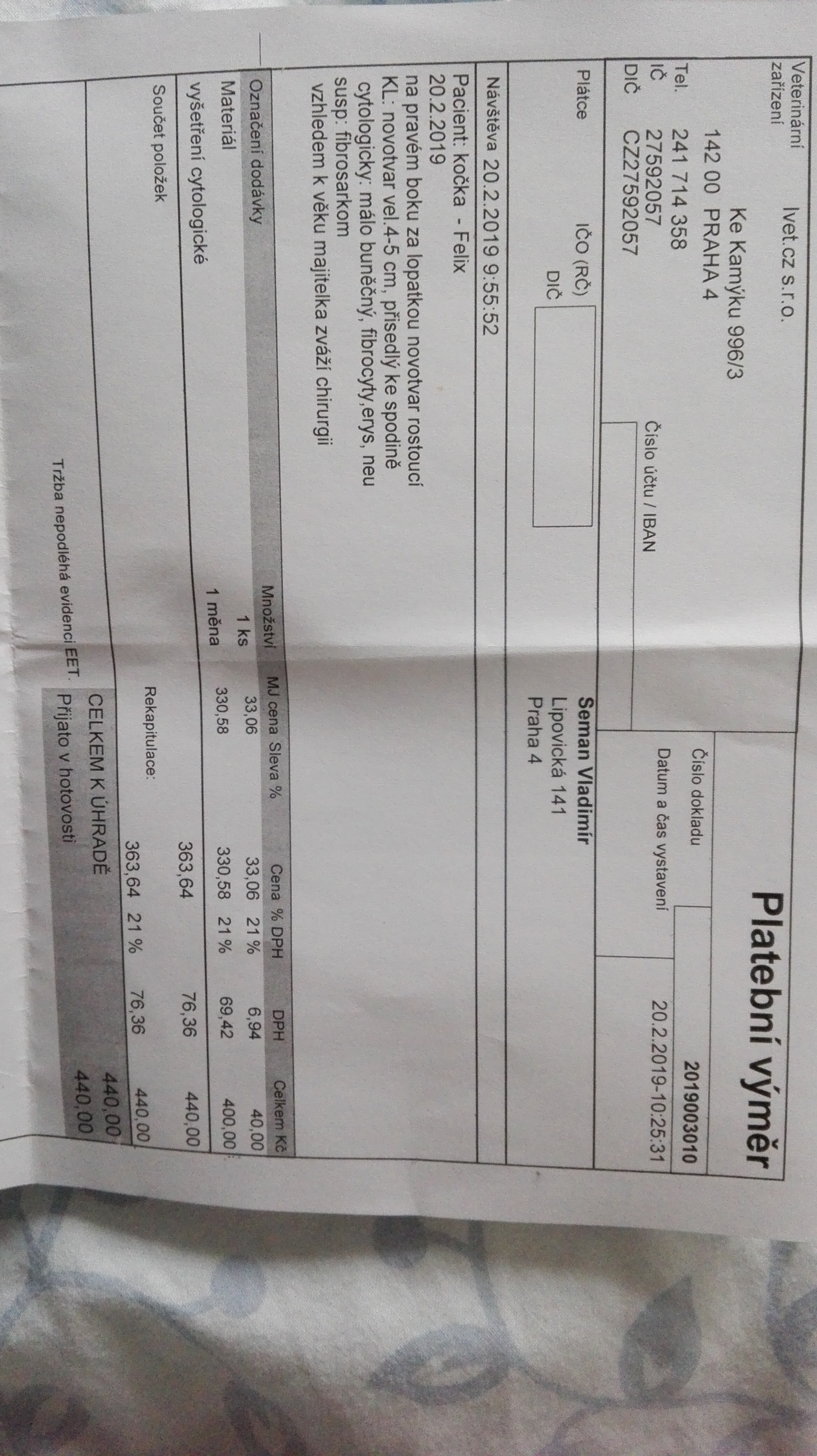 Včera u mého kocourka byl na základě odběru diagnostikovan fibrosarkom. Nemůžu se s tím smířit, kocourek ma 15 let a veterinář v jeho věku už operaci nedoporucuje. Neexistuje alespoň něco , co by zpomalilo růst této zákeřné boule?? Je naprosto ilí,žere, leze po stromech a na svůj věk dle vet. nevypadá-Jen na druhou stranu ho nechci vystavovat dalšímu trápení -vyšetření, operace a nejistý výsledek. Chci znát jen Váš názor. Děkuji
