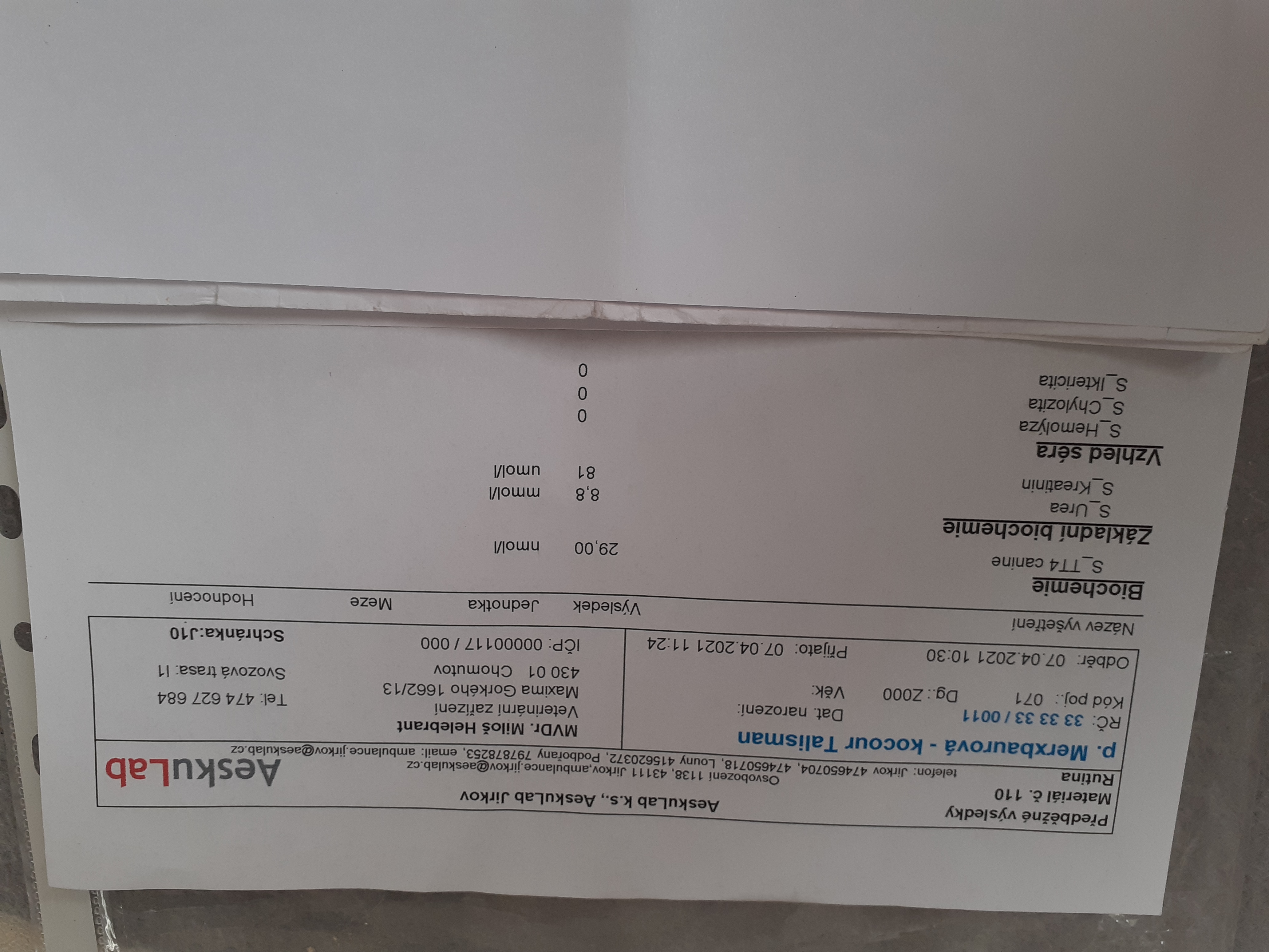 Dobrý den přikládám rozbor krve kocoura s hypertyózou děkuji za odpověď