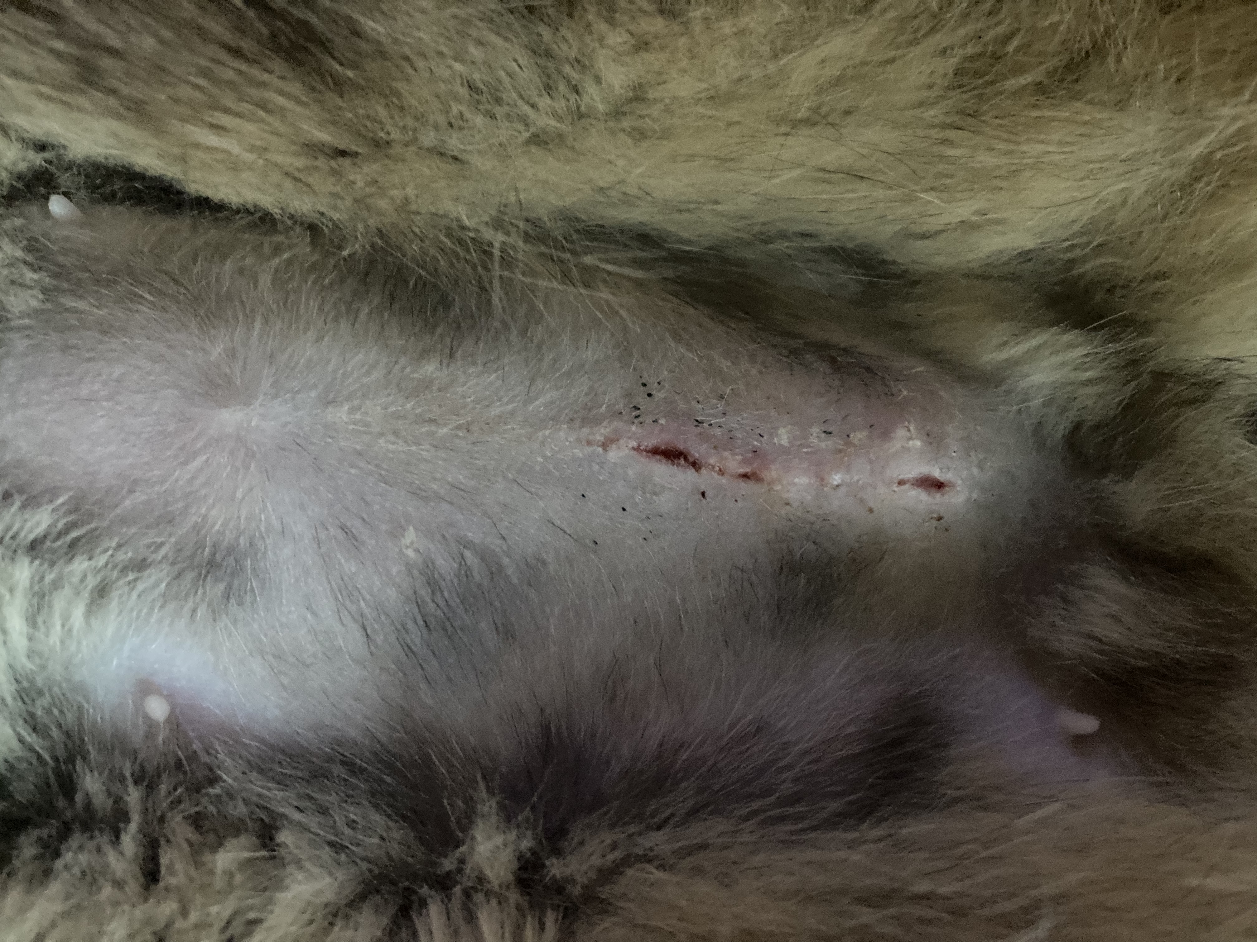 Dobrý den, mám kočku, která je 7. den po kastraci. Stihla si 4.den trosku poškodit steh, ale na veterine nám řekli, ze je to v pořádku, dali antibiotika na 10 dni a dostala límec. Na kontrolu máme přijít jen v případě, ze by se stav kočky zhoršil. Nyní jizva vypadá po operaci viz. Přiložena fotografie. Je toto prosím za Vás v pořádku nebo doporučujeme navštívit veterinu ? Dekuju moc za Vasi odpověď