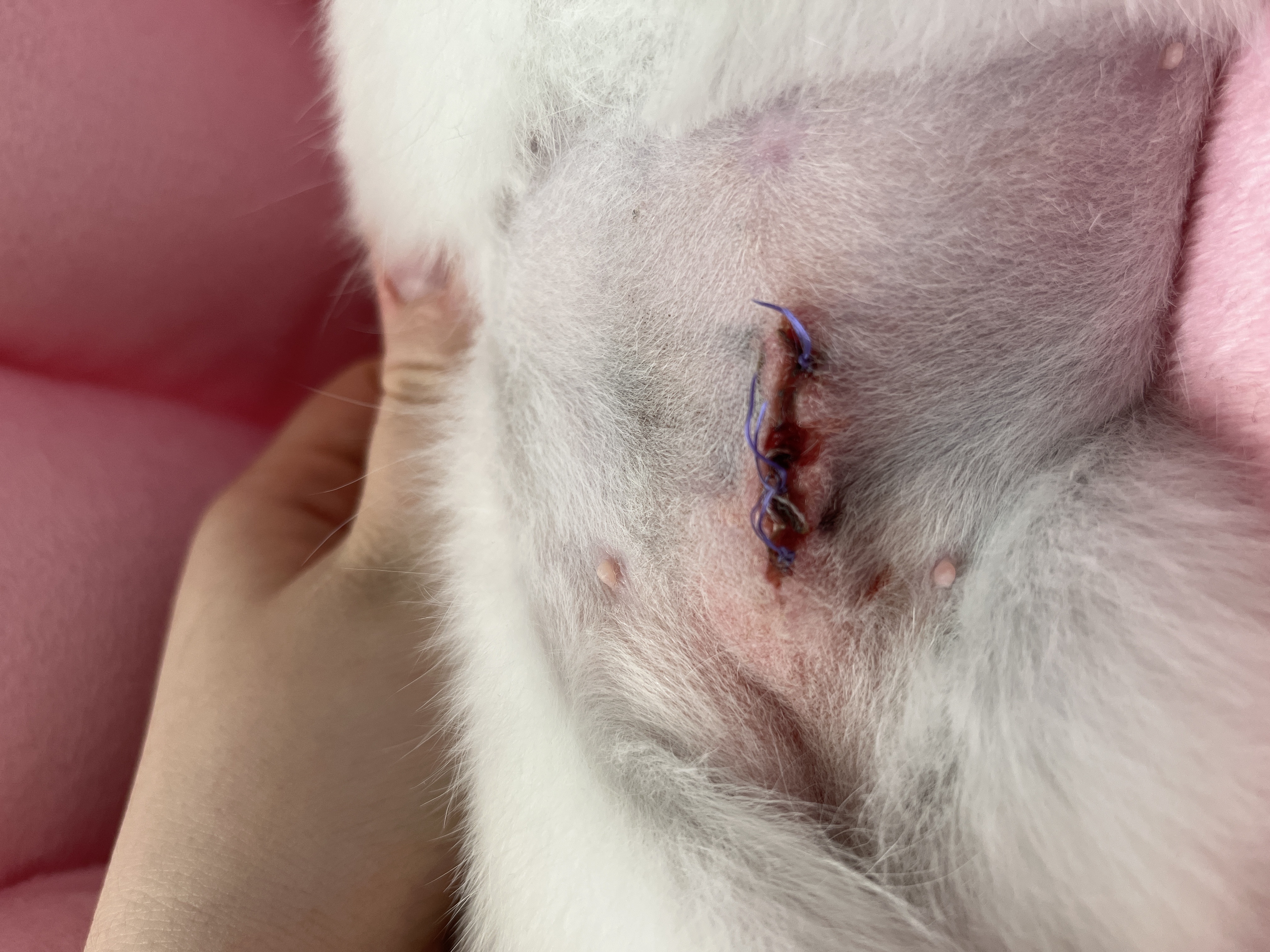 Dobrý den, můžete dle fotky posoudit jestli je jizva po čerstvé kastraci v pořádku? Měla i obleček aby si to nelízala, ten jsme ale čtvrtý den sundali. Nemáme teď možnost dostat se k naší veterinářce. Jizva je týden stará od operace. Moc děkuji za odpověď.