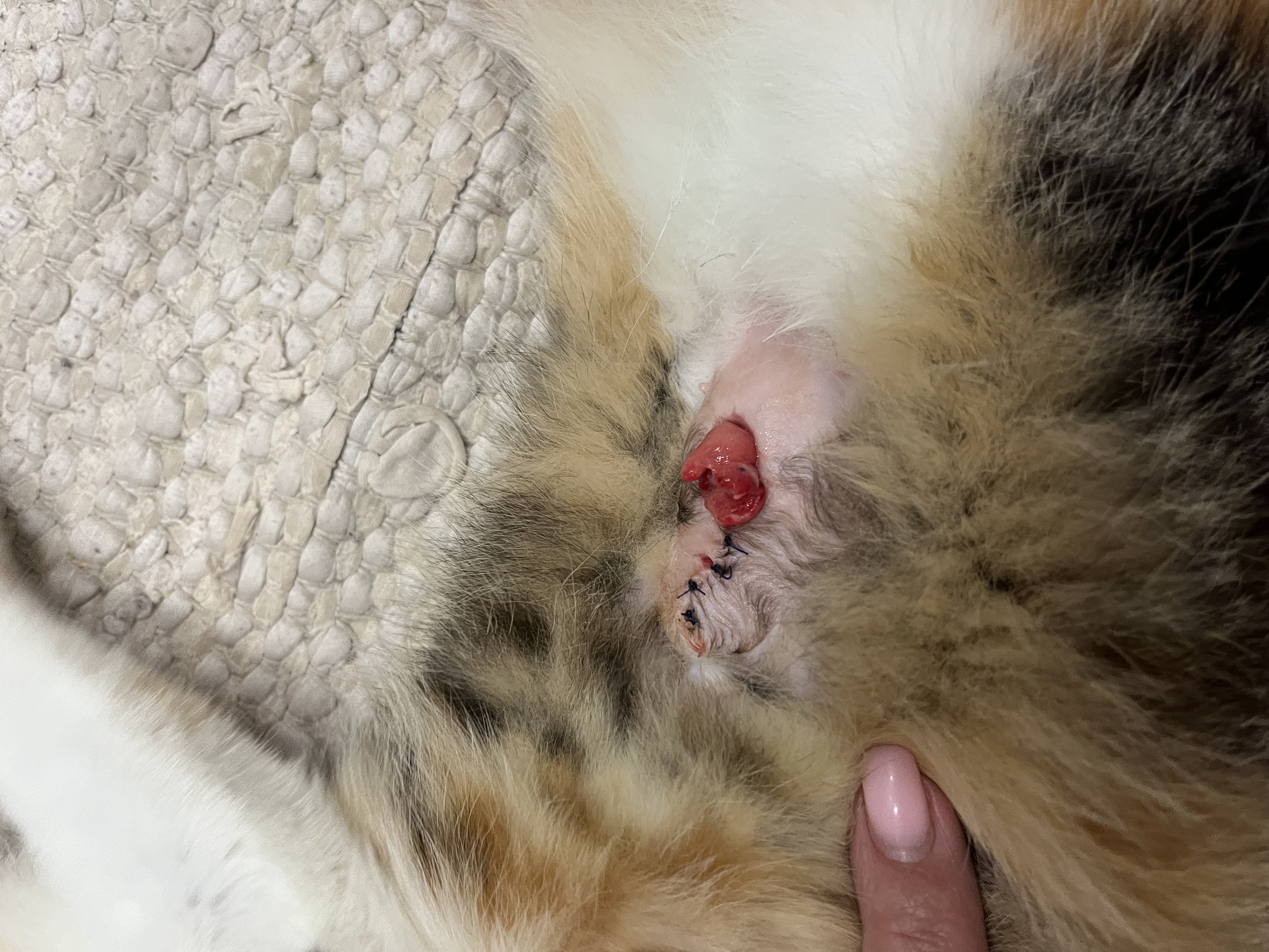 Dobrý den, dnes to v pořádku není, toto bude potřebovat opět revizi rány. Má ta kočka nějaký límec nebo obleček? Toto se nestává pokud do toho kočka nejde. S pozdravem MVDr. Orlovská