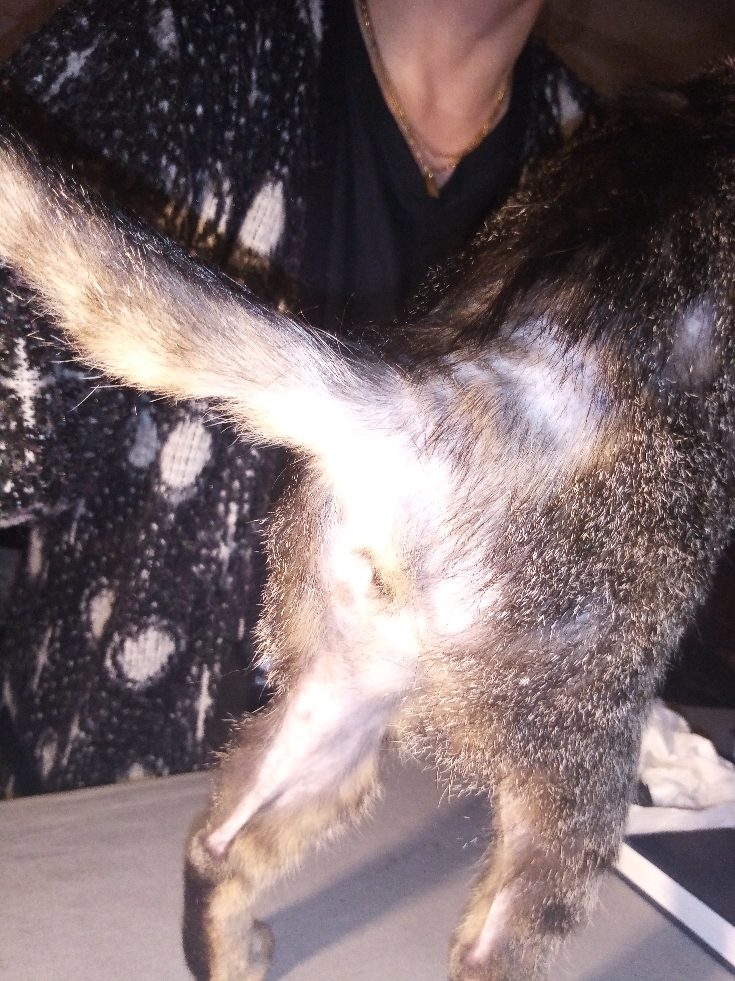 Dobrý den, chtěla bych se zeptat proč mojí kočce řídne srst. Kočce jsou 3 roky a je převážně v bytě. Zhruba před měsícem a půl začala nejprve na spodní straně nohou, břiše a postupně na hřbetu mizet srst. Před měsícem jsem ji sundala obojek proti blechám. stále se drbe a olizuje. Přikládám foto a poprosim o radu co to může být? Děkuji za odpověď a radu