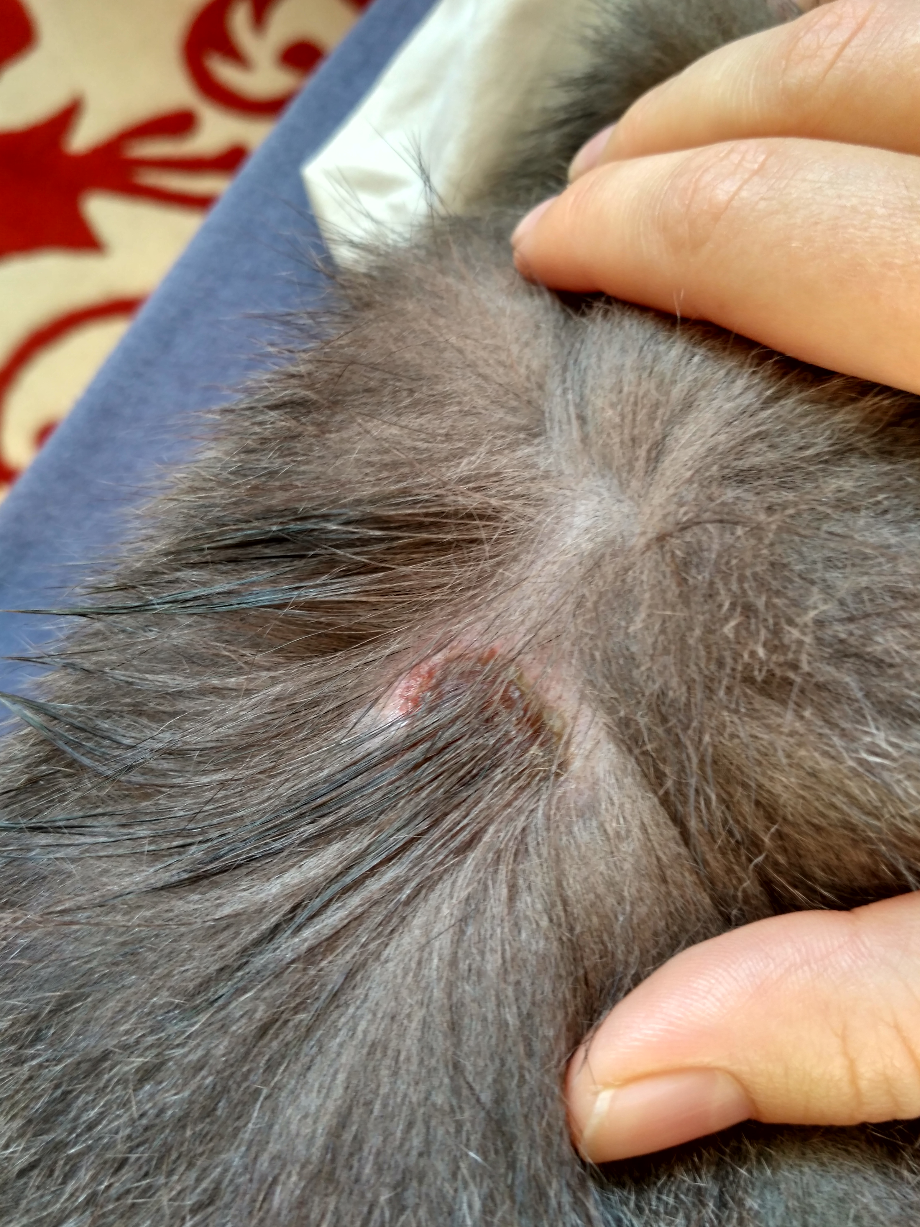 Dobrý den, Opravdu dle fotky nejde určit ani diagnóza, natož příčina kožního problému. Co je zřejmé je, že se jedná o aktivní, pracující problém lehce zánětlivého charakteru a proto bychom i s přihlédnutím k vyššímu věku doporučili návštěvu veterináře k ošetření a další medikaci. Hezký den