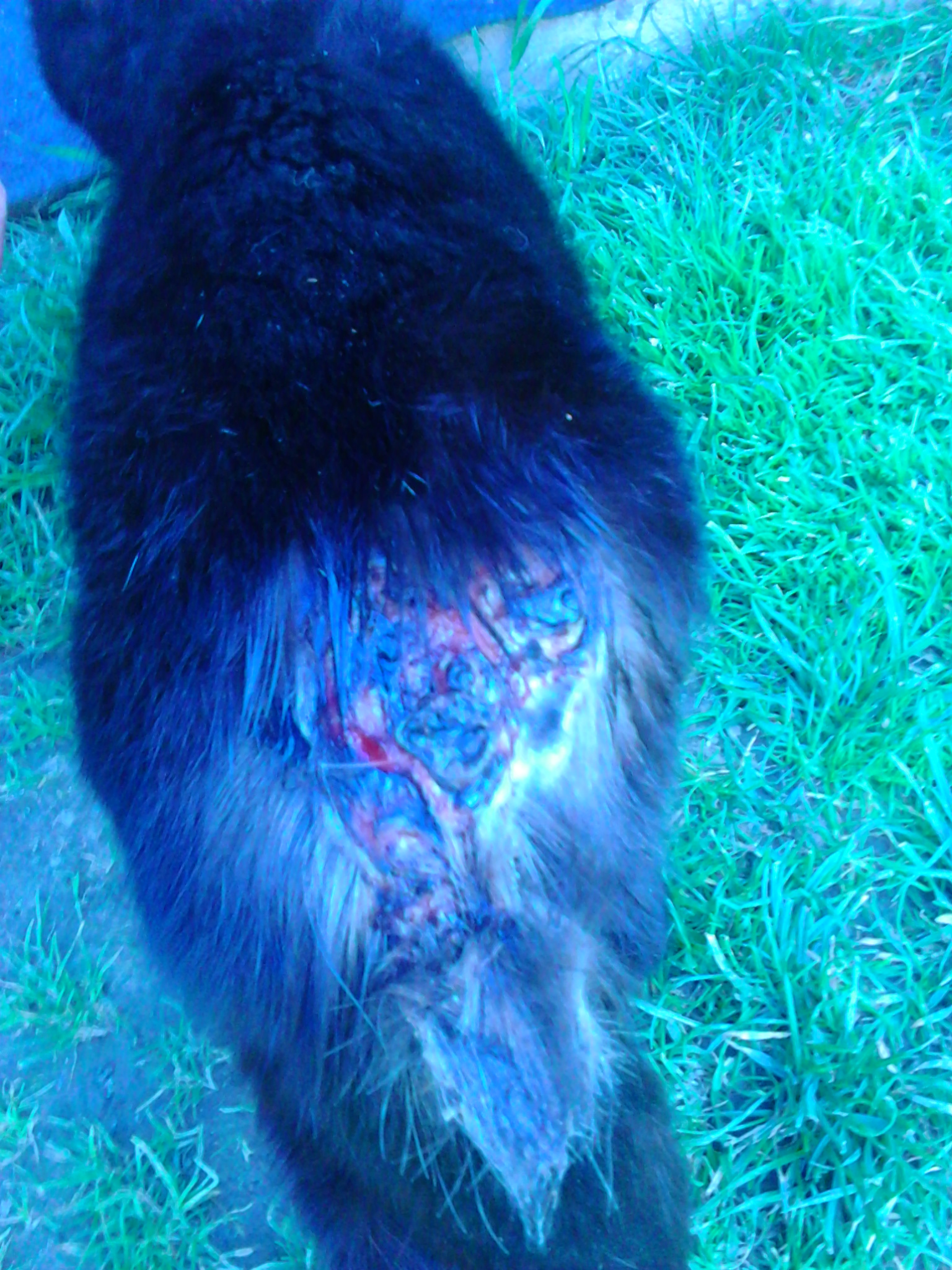 Dobrý den, cca před týdnem přišel kocour s malou rankou u ocasu a postupem času se rána změnila až na současný stav. Rána stále mokvá a nezasychá. Kocour je starý cca 2 roky je venku není kastrovaný, kromě uvedené rány není nijak apatický, je stále aktivní. Zhruba ve stejný čas jsme kocourovi dávali obojek proti blechám a klíšťatům.
