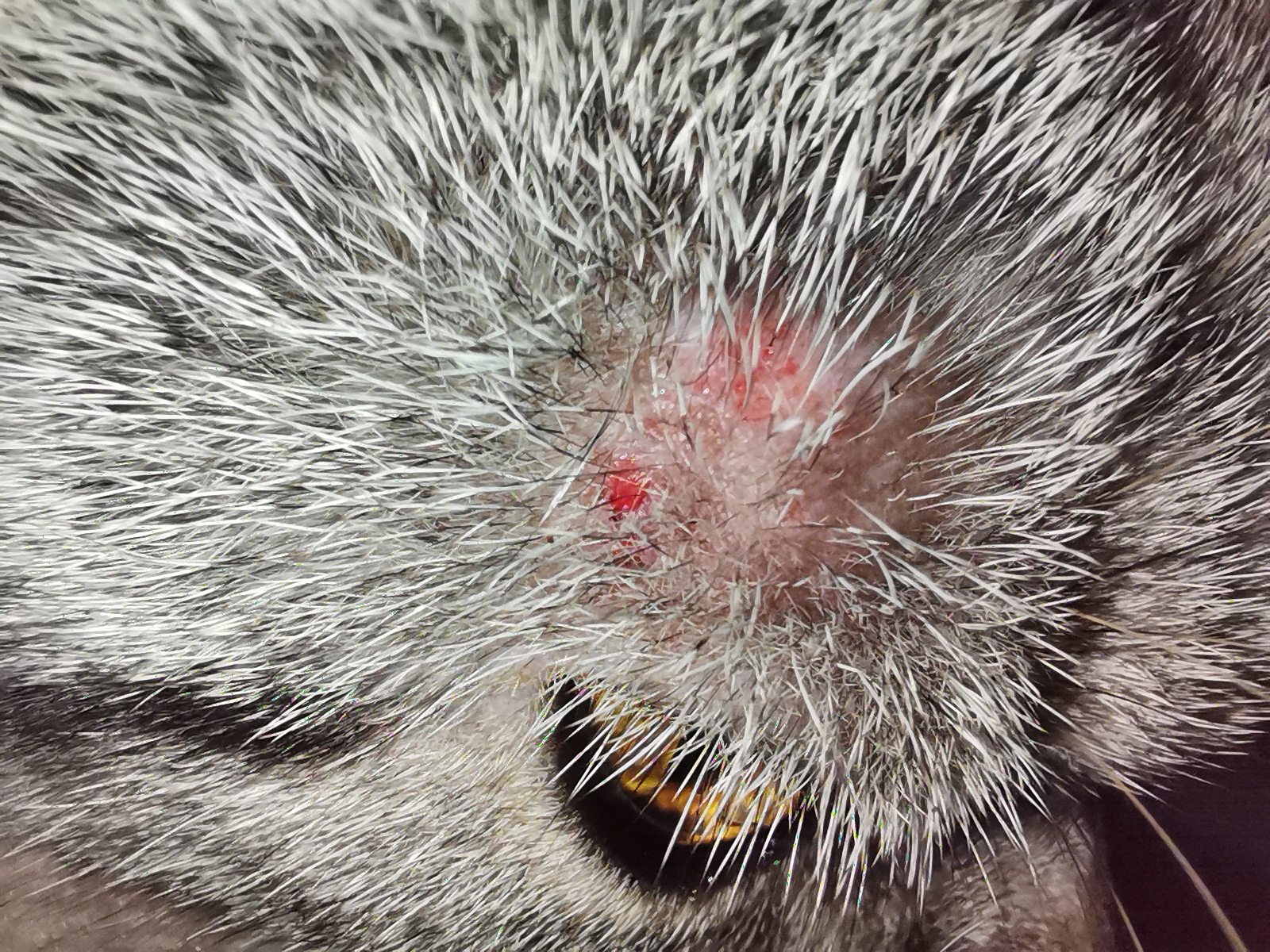 Dobry den, potrebovala bych prosim poradit. Moje kocka uz ma par dni takovou ranku nad okem (viz foto) Bojim se, aby si to drbanim jeste vic nezhorsila a nevim jestli je to neco vazneho, abychom popr. Navsivili vet.kliniku. Predem dekuji