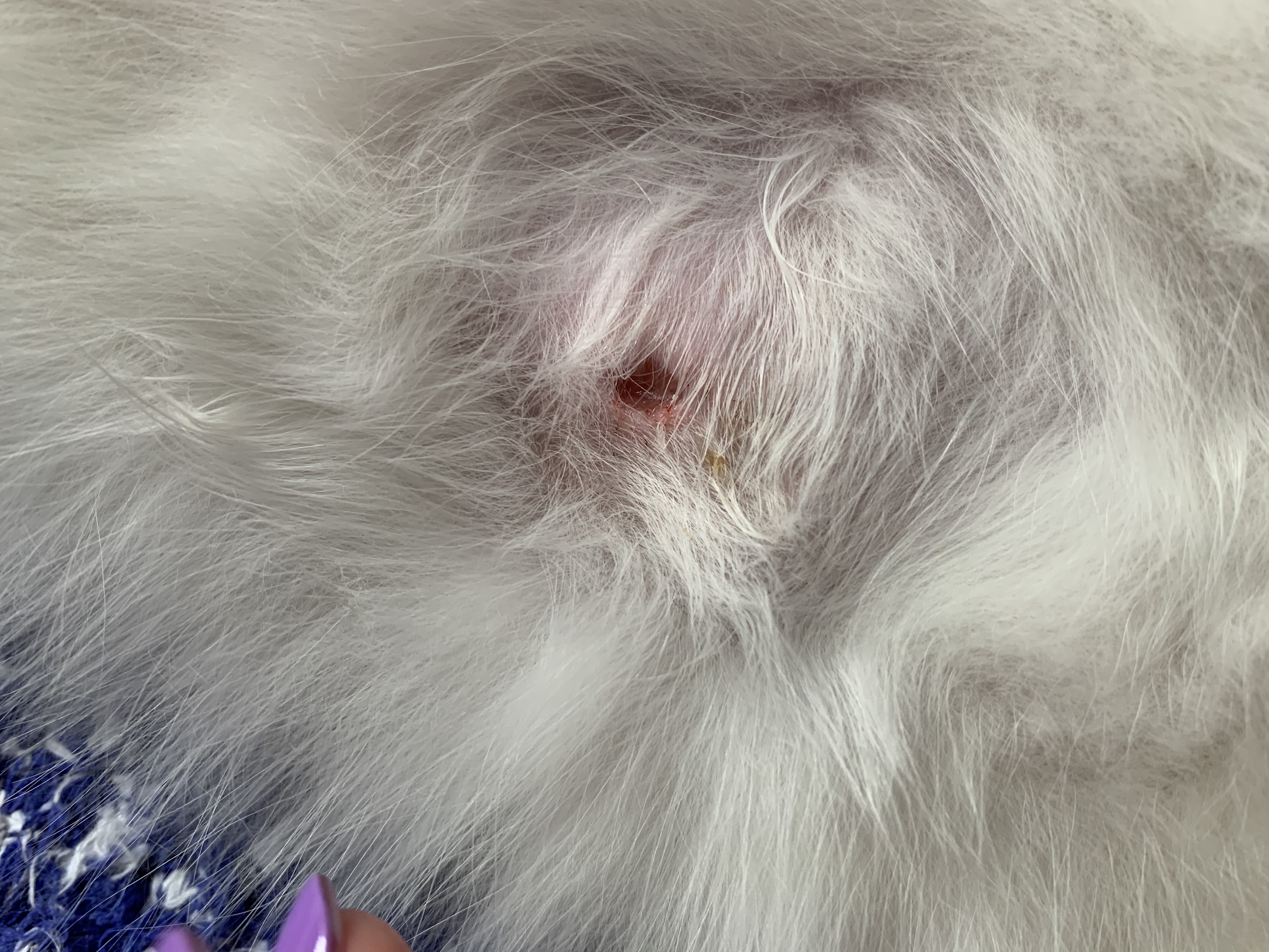 Dobrý den. Pokud je to v místě, kde byla provedena kastrace, tak je to patrně po stezích., vylízané. Dezinfikujte to místo Betadine. S pozdravem MVDr Jančík.