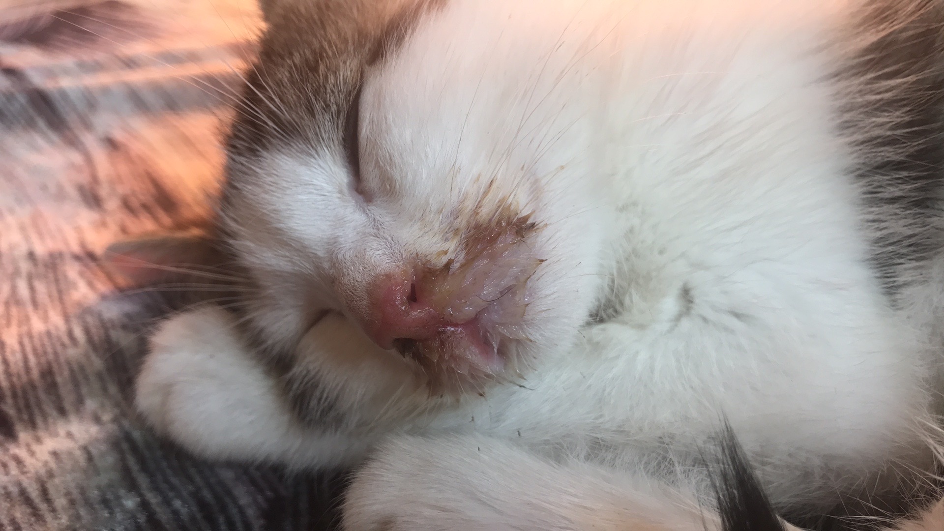 Dobrý den,prosím vás,včera sme dostali kocourka.Má být starý cca 6-7 týdnu. Má něco jako hnis kolem čumáčka a pusinky. Nevím z čeho a ani jak mu pomoct. Chci se zeptat,mám mu to přetirat třeba Heřmánkovym odvarem,nebo jen vodou? Děkuji za odpověď. Foto v příloze. Meggy