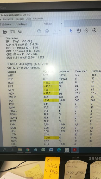 Dobrý den. Vyšetření krve není úplně kompletní / doporučil bych doplnit vyšetř.krve na SDMA - Synlab., Laboklin/., které je přesnější na diagnostiku raného selhání ledvin., vč. geriatrického profilu biochémie /. S pozdravem MVDr Jančík.