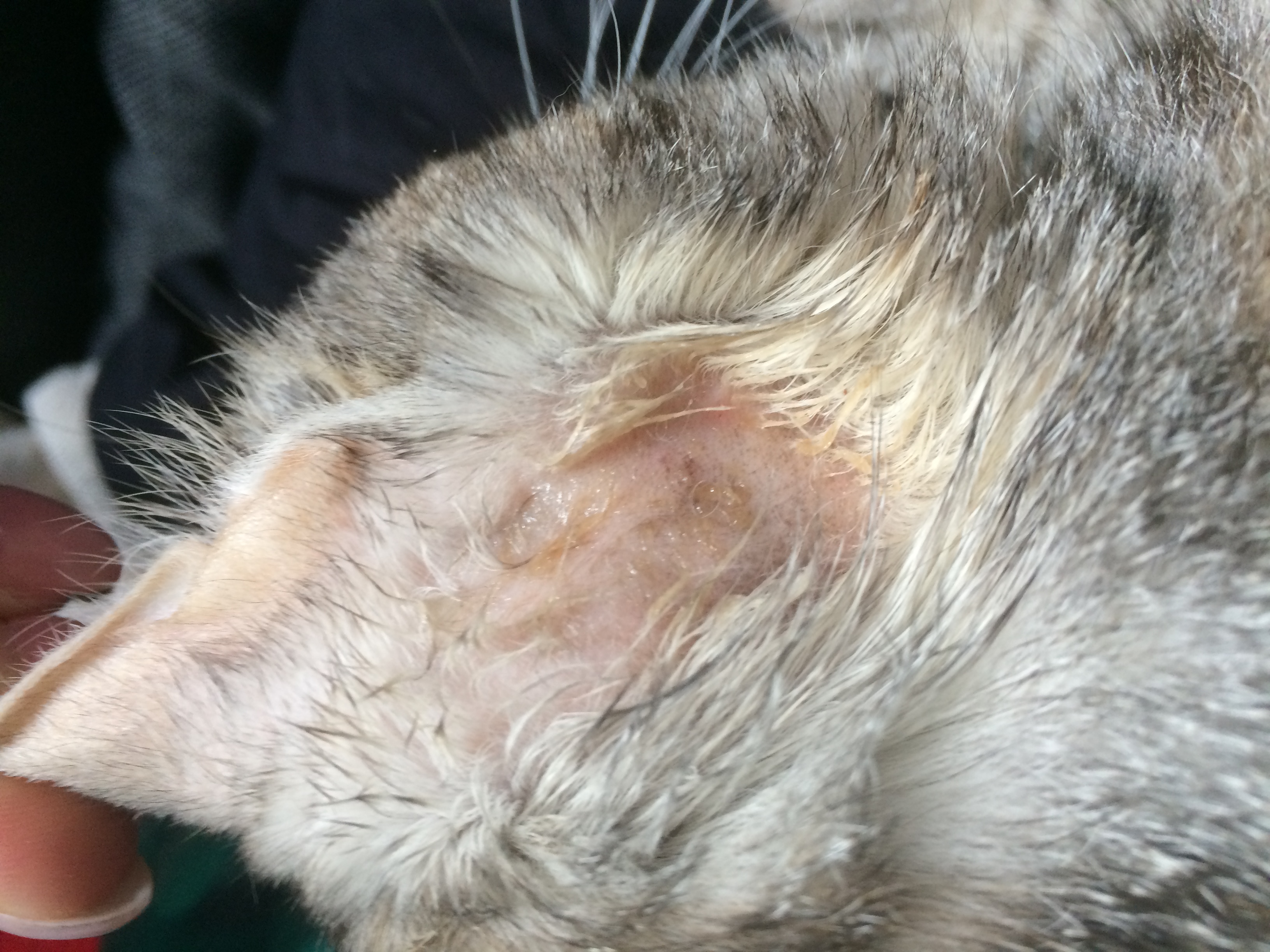 Dobrý den, mám doma 2 roky starou kočku domácí, která s námi žije od malinka v baráku. Před 10 dny jsem na ní začala pozorovat časté škrábání za pravým uchem a pod krkem. Když se škrábání projevovalo častěji (několikrát denně) navštívila jsem veterináře. Po konzultaci mi bylo řečeno, že by to mohla být plíseň a dal jí jehlu pod kůži (netuším co to bylo v očkovacím průkaze není záznam). Předepsal i mast Vetramil, která je jen jak jsem si přečetla v příbalovém letáku na zahojení kůže. Po 14 dnech máme jít znovu na jehlu a vše mělo být v pořádku. Domnívám se, že léčba či kožní problém mohl být zvolen špatně - kočka se stále škrábe ikdyž už jen za uchem asi 2x denně - nejvíce ráno po probuzení. Lysina za uchem se jí ale stále zvětšuje. Dozvěděla jsem se také, že plíseň je přenosná i na lidi, jsem v 5 měsíci těhotenství a tak mě to trochu děsí. Chtěla bych se zeptat zda by druhé očkování mohlo již pomoci a nebo by se mohlo jednat o jinou nemoc? V příloze zasílám foto. Rány jsou již natřené mastí. Předem děkuji za pomoc K.Peňázová