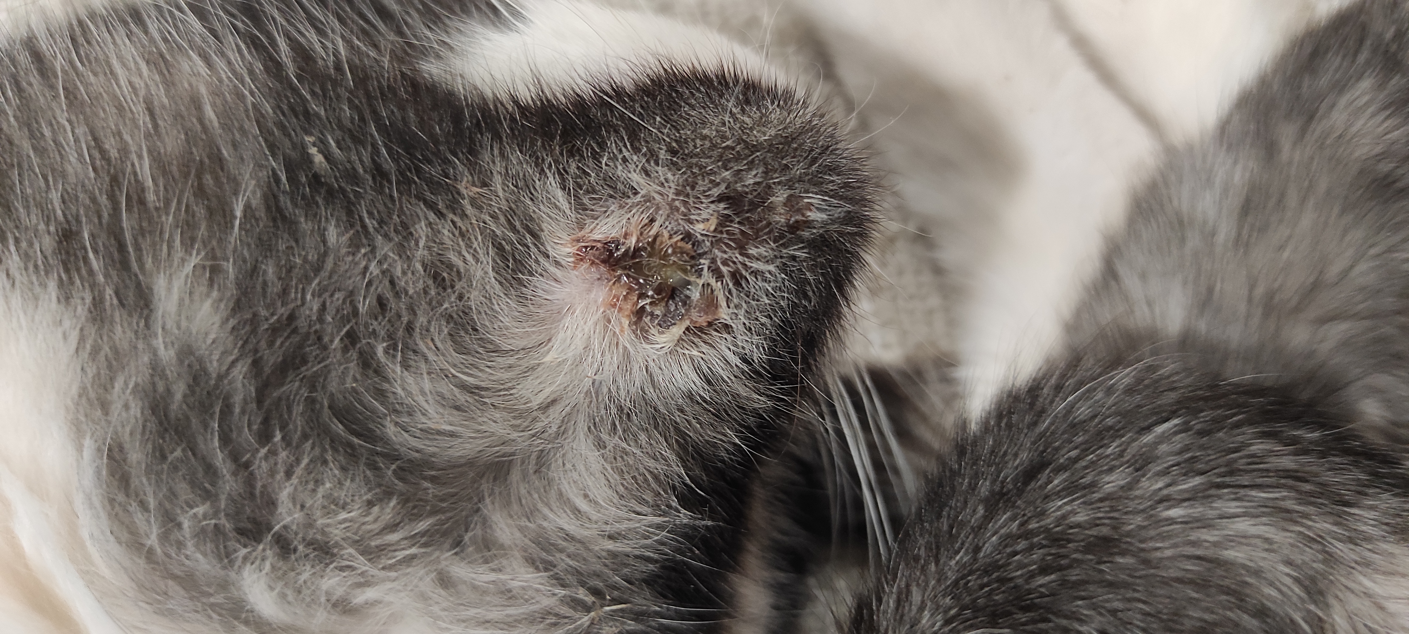 Dobrý den, zkusíme to následovně - ránu trošku oholit, pořidte clorexy 4% šampon. Dejde si trošku šamponu na mokrou gázu, napěnte a pořádně "šudlejte".. Žádný strup tam nesmí zustat, tohle každý den, klidně spíš do krve, ale strupy pryč. Pokud to nezabere, je potřeba vzít z toho otisk a podívat se, jaké buňky tam jsou a podle toho nasadit další terapii. Pořídiva bych i něco na blechy - nejlépe od veteriníře (nexgard combo, credelio, comfortis, ..).