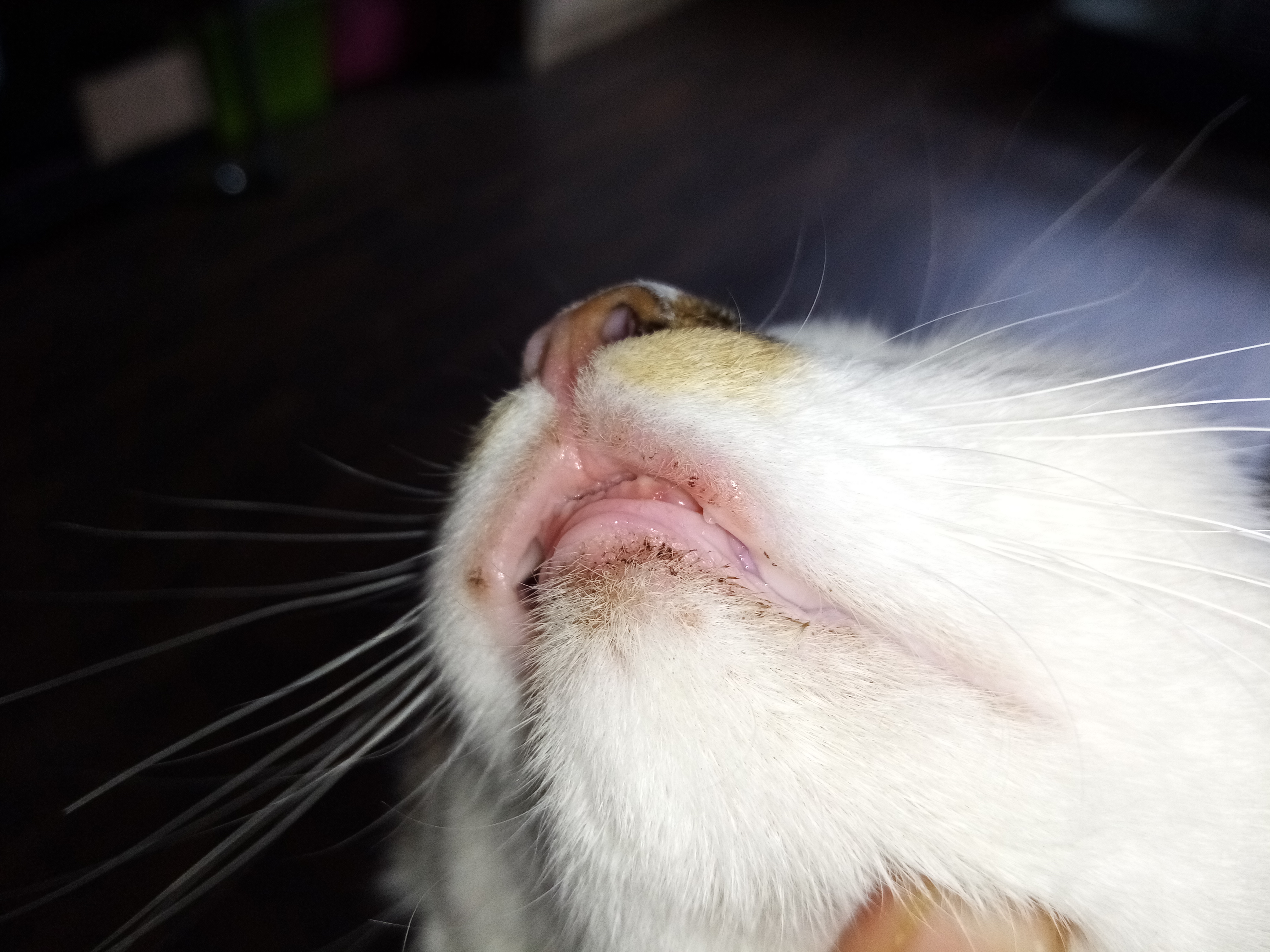 Dobrý den, Dotaz mám ještě jeden nedávno sem si toho všimla. Kočička měla na bradě a rtech buď slabší výrazu nebo ušpinění což sme si mysleli ale dnes to vypadá takhle. Mám se to stresovat a spěchat na veterunu nebo to mohu vyléčit i doma nějakými bylinkami..