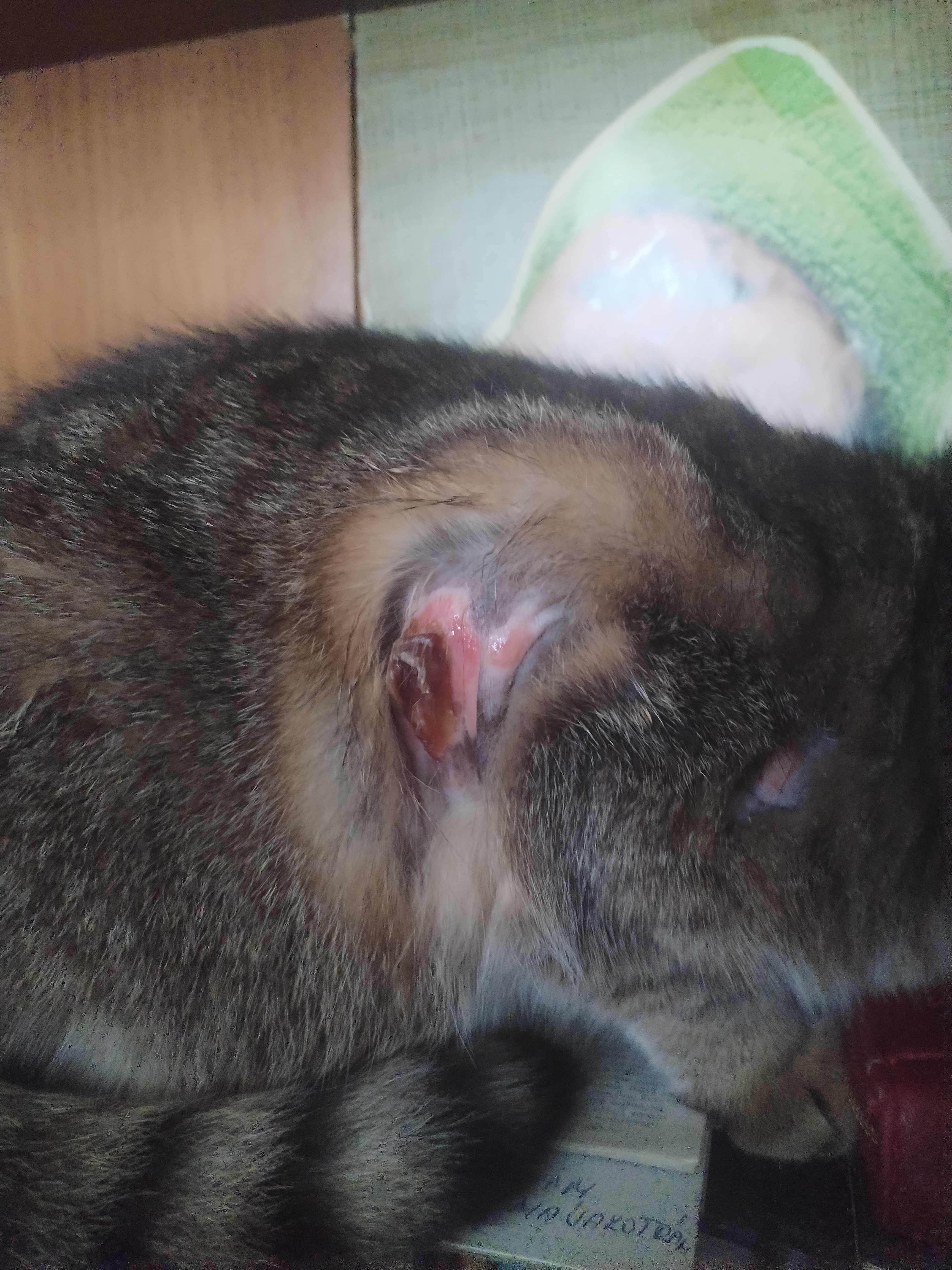 Dobrý den. Může se jednat o alergickou reakci která je mozna komplikovaná bakteriální infekcí .Doporučuji navštívit veterináře. S pozdravem MVDr Jančík.