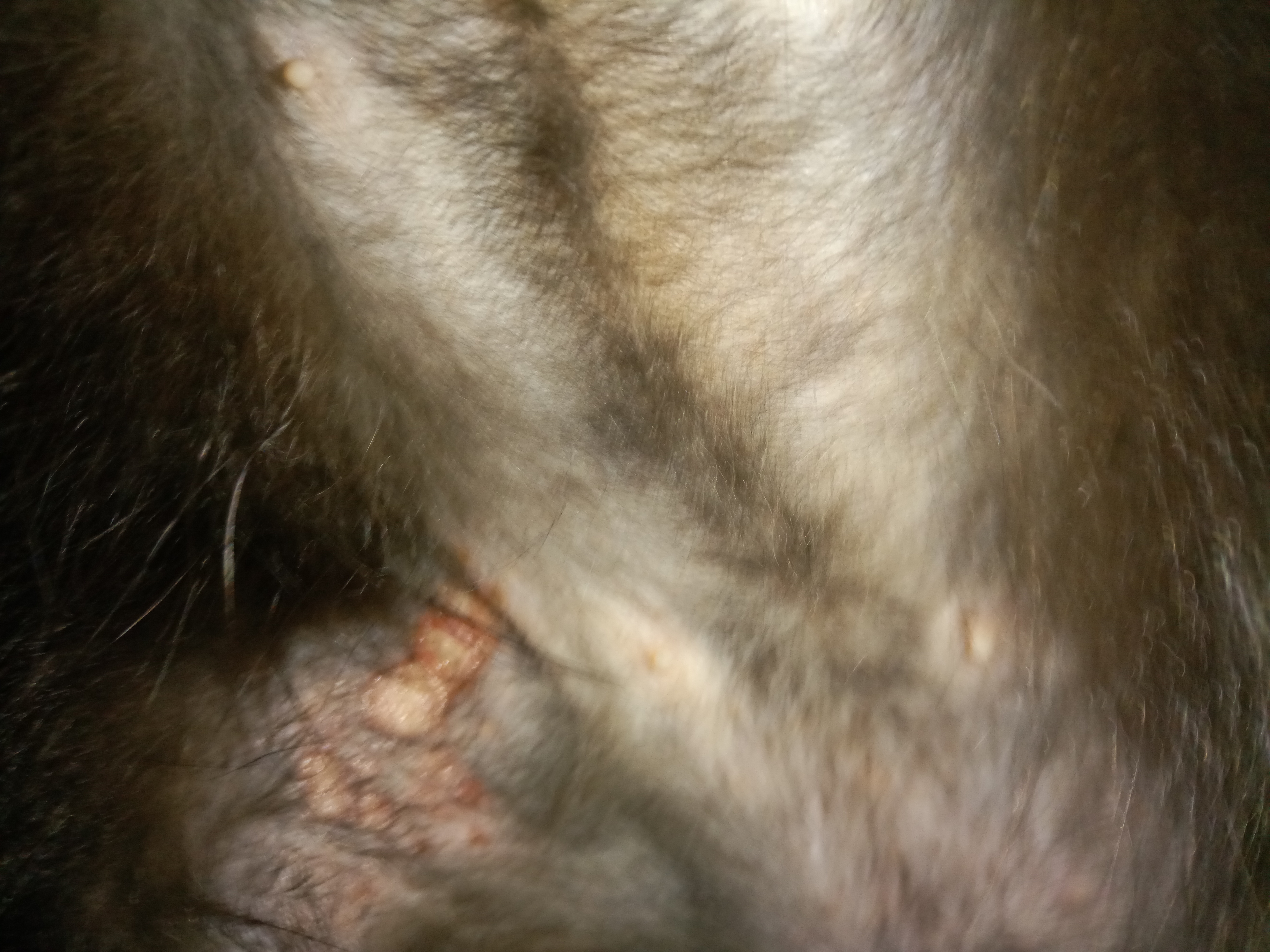 Naše kočička se častěji olizuje a škrábe a udělala se jí ranka