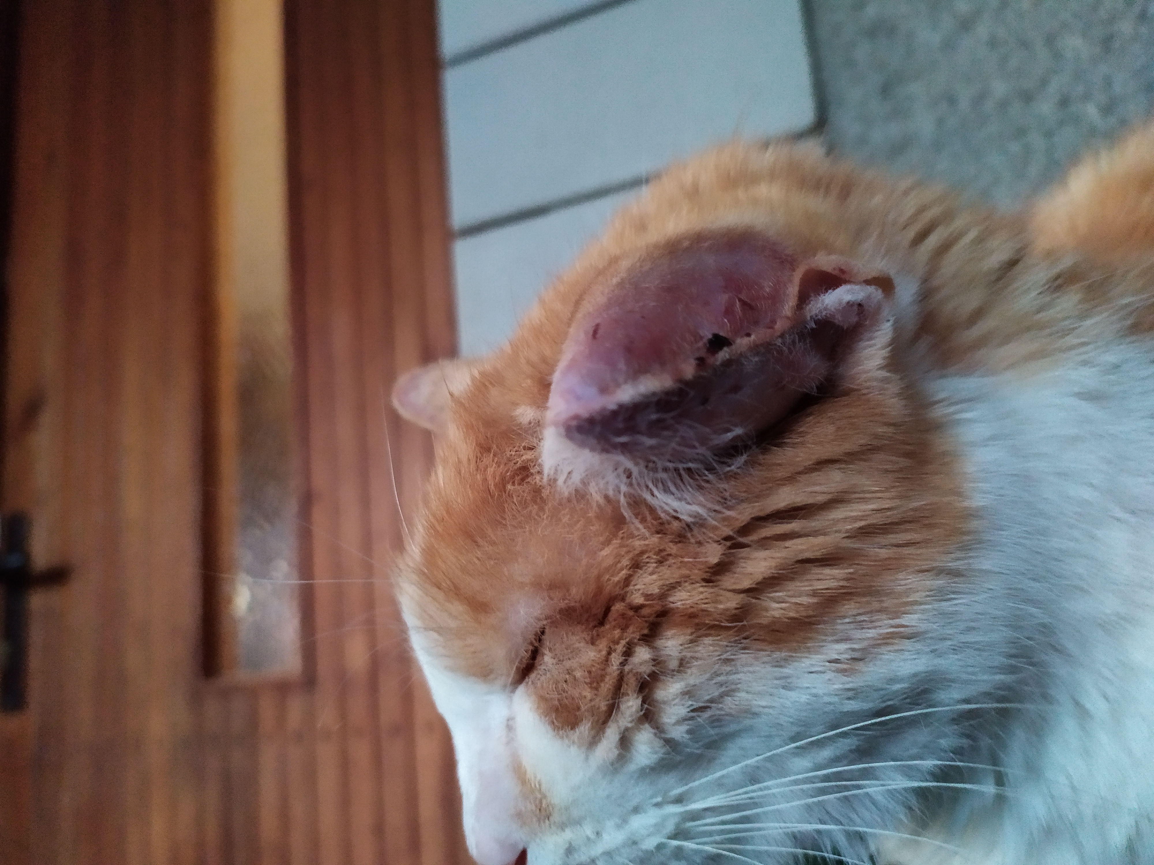 Dobry den, nedavno se nam vrátil zaběhnutý kocour,ktery byl od mala pouze venku na zahradě u domu,nebyval uvnitř. Po par dnech jsme si vsimli natekleho ucha viz fotka. Vrátil se asi po roce,kdy nevime kde byl,co delal. Myslime si ze se porval s jinymi kocoury a mohl tak dostat nejakou infekci nebo zanet do rany na uchu nebo snad muze jit o nejakou nemoc? Samozrejme s nim pujdeme na veterinu, ta ma ale otevreno az v pondeli. dekuji za odpoved Krejci