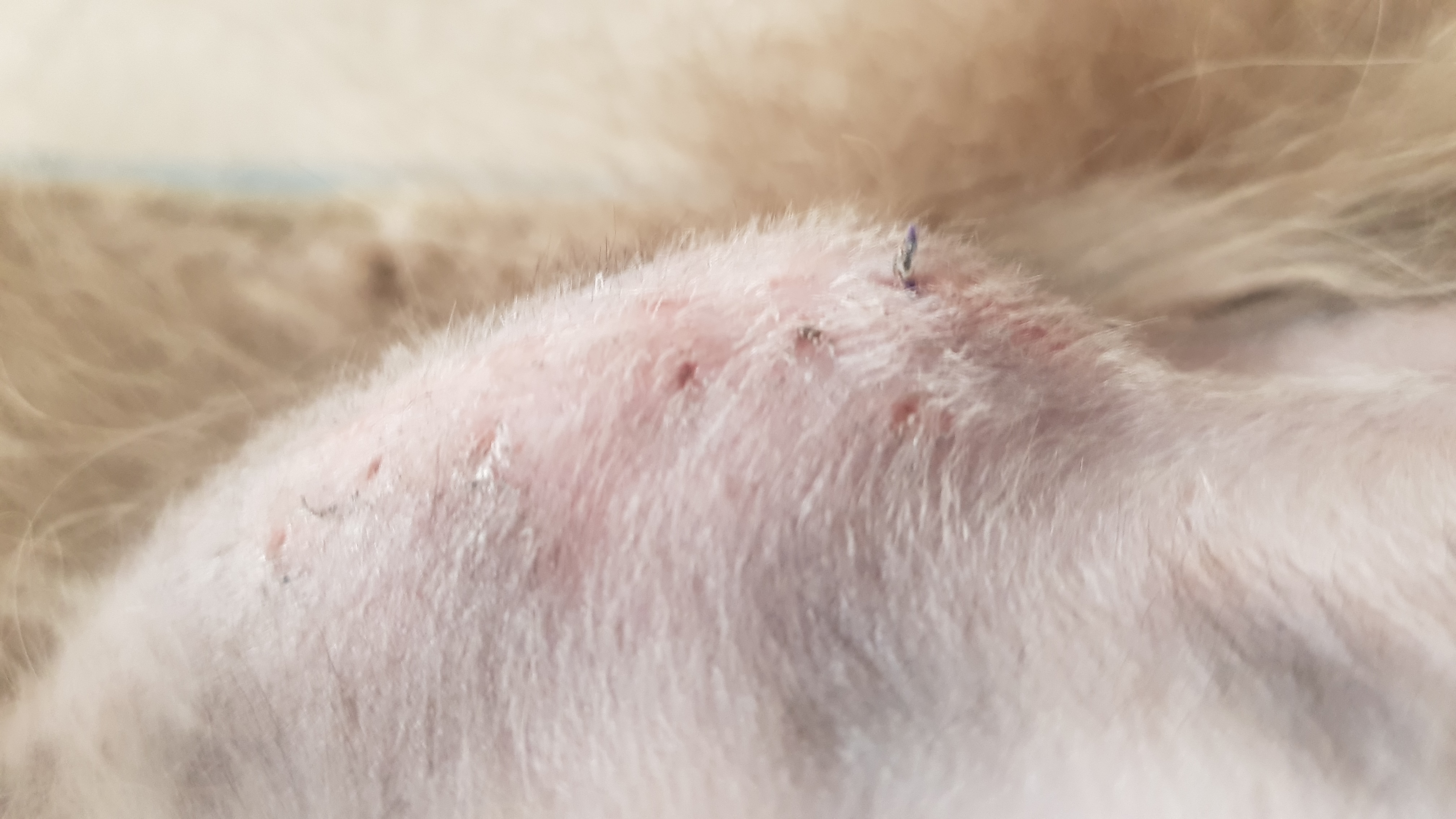 Dobrý den, dnes na Veterině Svobodník mi 9. den po kastraci vyndavali stehy a odhalili bouli v jizvě, viz fotografie. V první řadě část stehu v ráně nechali a k bouli řekli: "Sledovat týden". Obracím se na Vás, abych získala i jiný nezávislý odborný úhel pohledu jak na nechaný steh, tak na bouli. Boule je nebolestivá, nelze zatlačit, není horká, není zarudlá a s rány nic neteče. Velmi děkuji za odborné stanovisko.