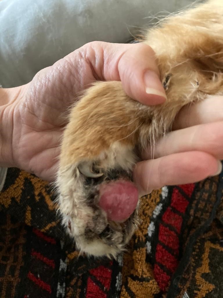 Dobrý den, chtěl jsem se optat jak postupovat při problémech, které má náš kocour na pacce. Snad to bude dobře vidět na přiložené fotografii. Jde o venkovního kocoura, ale díky tomuto zranění ho máme aktuálně doma, protože se mu s tímto zraněním špatně chodí a spíše polehává. Jinak ale vypadá celkem v pohodě, hlavně pravidelně žere. Děkuji, s pozdravem Říha