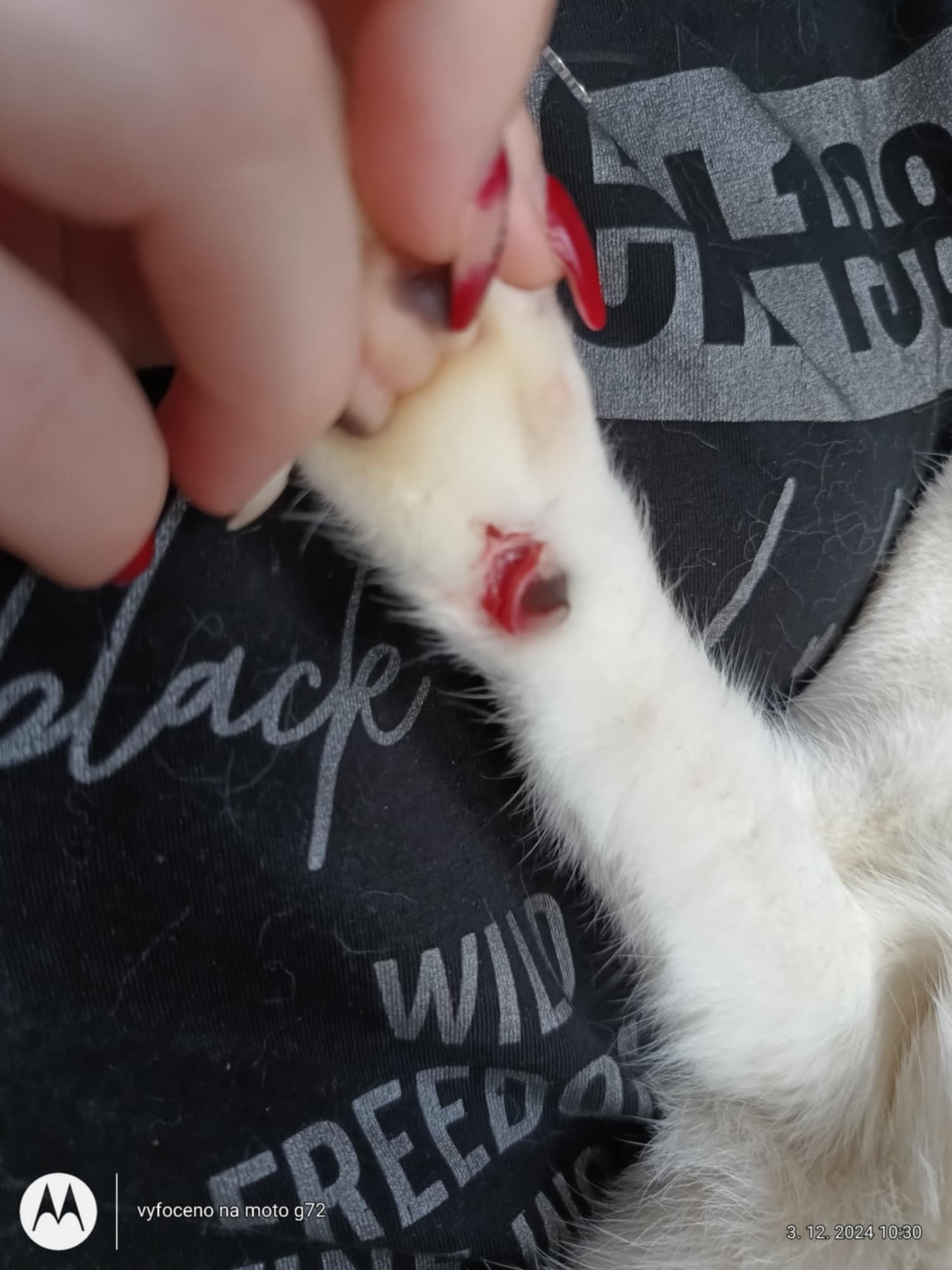 Dobrý večer můj Kocour Miky má utržený přední karpální polštářek máme antibiotika ale vůbec se mi to nelíbí tak jestli nezajit znovu k doktorovi fotka je focená ráno