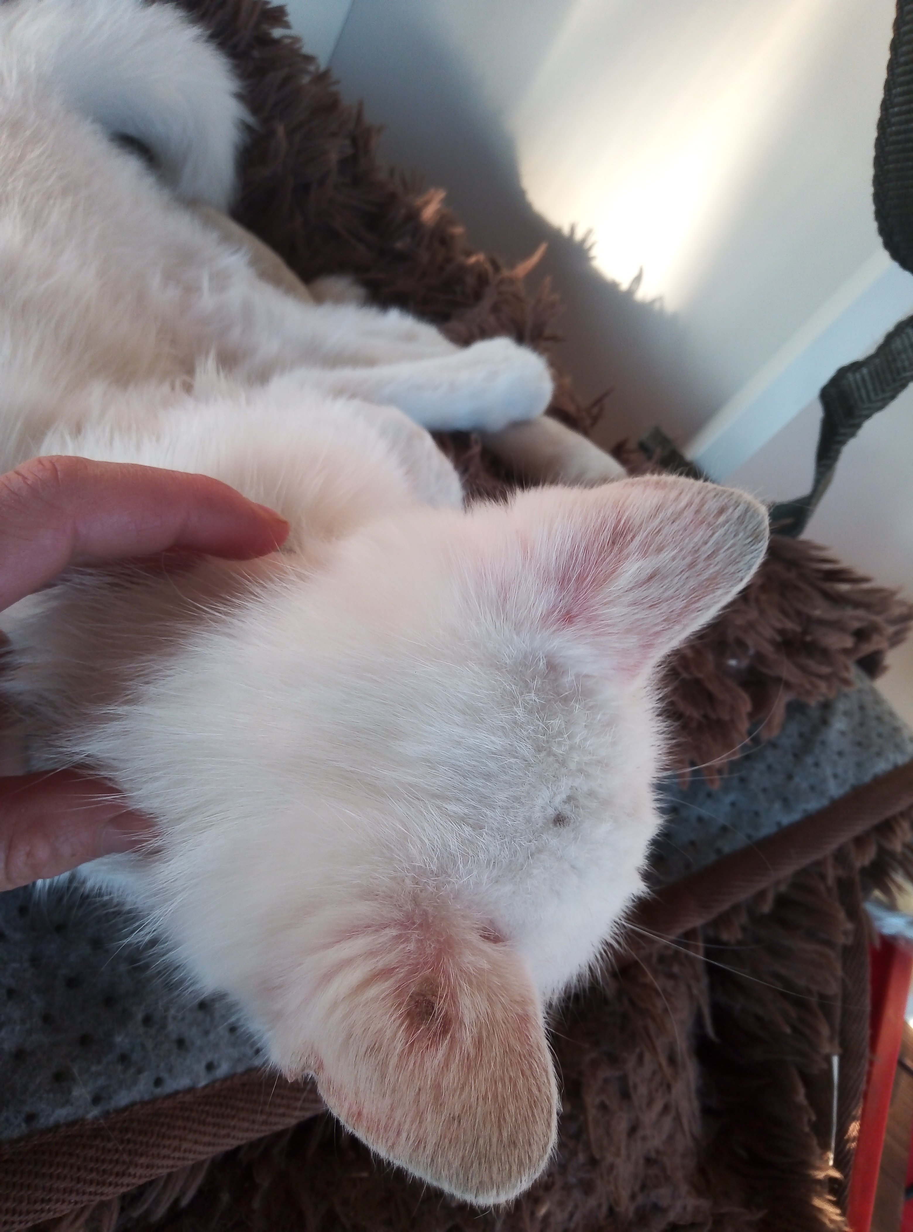 Dobry den, mame kocourka ktery je cely den venku. Tento tyden jsem se vsimla, ze ma hodne vypadanou srst na usich a ma tam jakoby stroupky. Je cely bily, ma krasnou srst, stroupky ma jen na usich viz foto. Jdou na nej hodne klistata, ma proti nim obojek. Na usi mu ale i presto jdou. Muze to byt i tim?