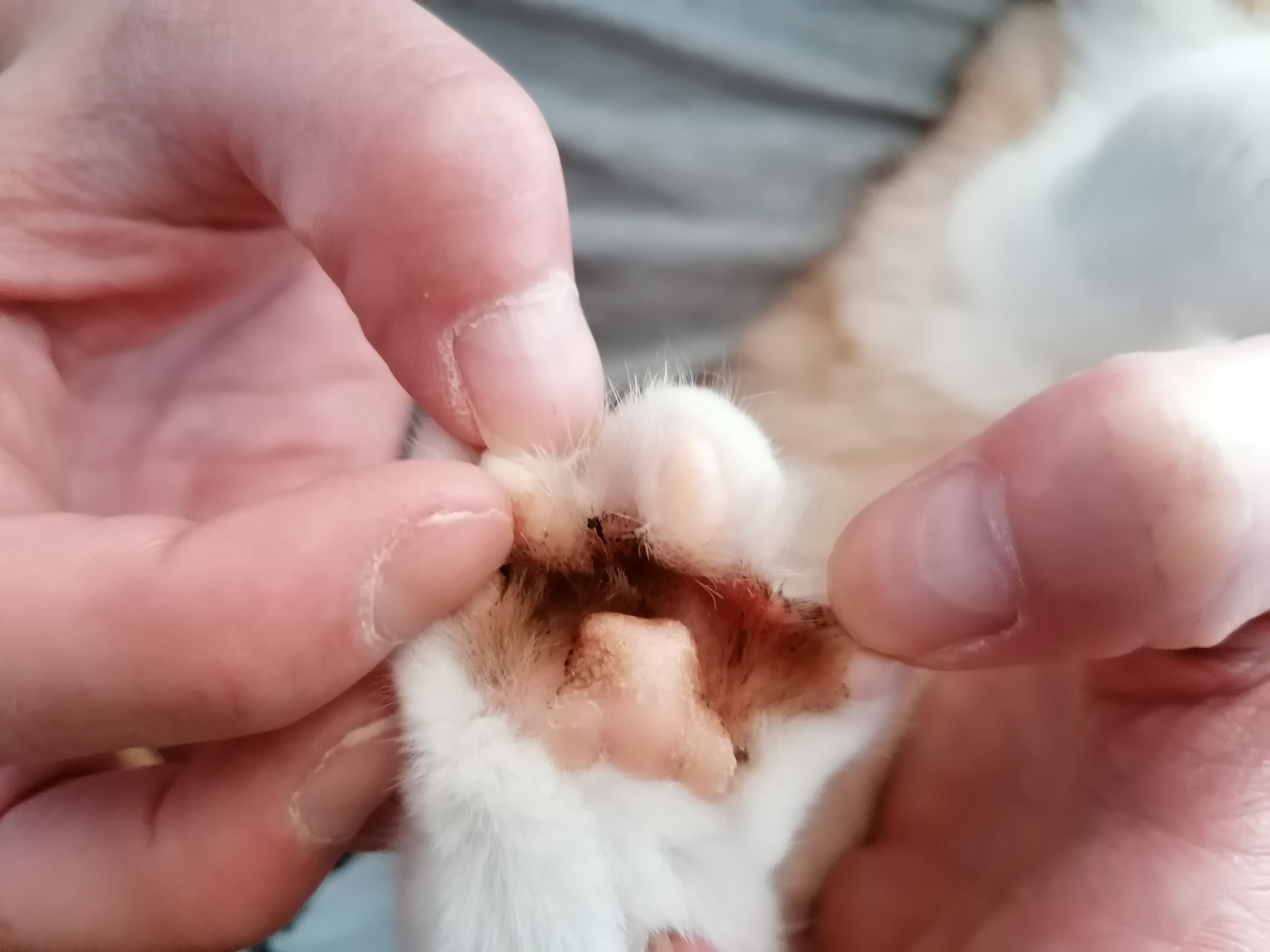 Dobrý den.Kočka má mezi prsty delší světlé chlupy,na jedné tlapke ji ty chlupy jakoby sčernali ,tak jsme ji tam tu srst ostríhali.Teď to vyzerá takhle.Co by to prosím mohlo být?Kvasinky?Zánet?