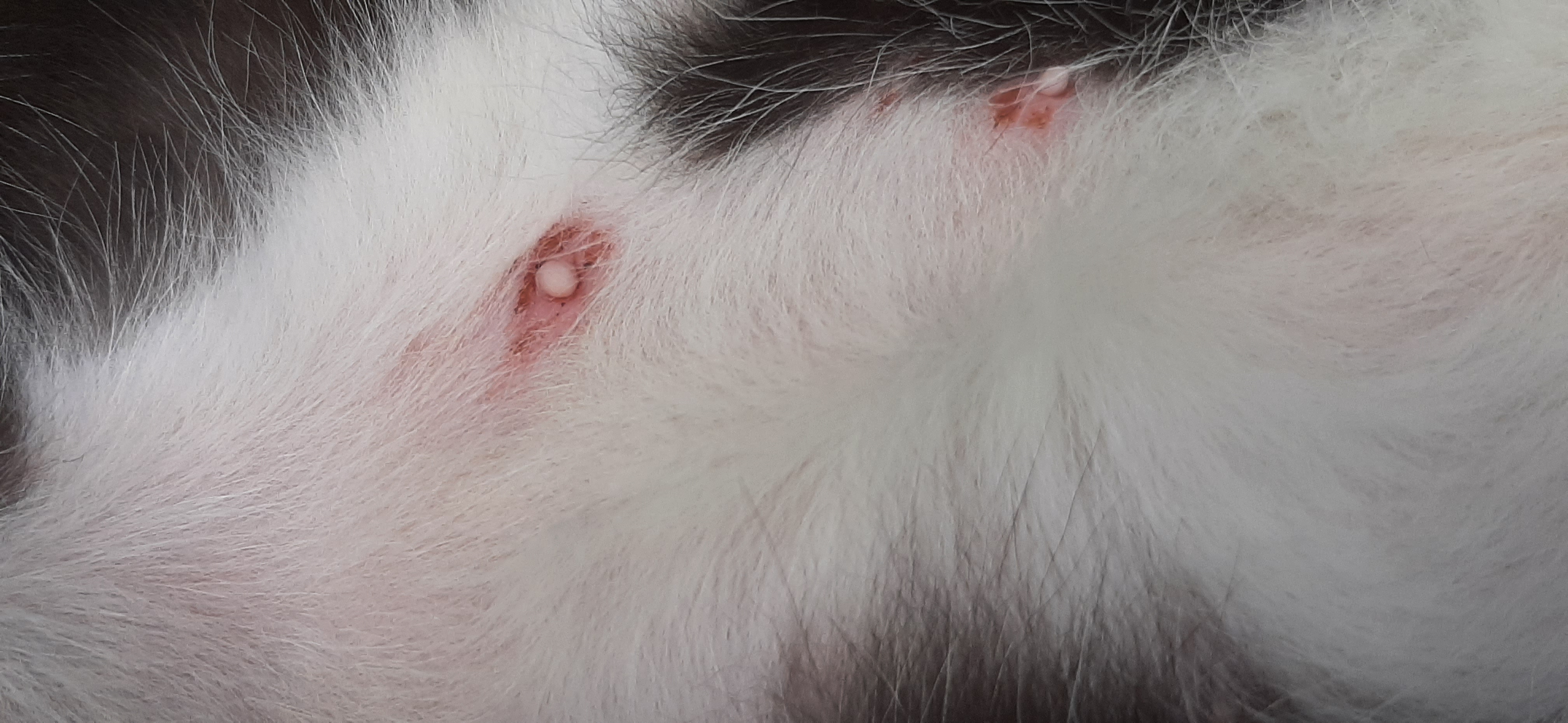 Řešit to máte s veterinářem. Předtím můžete kočku určitě odblešit a červená místa desinfikovat třeba betadine.