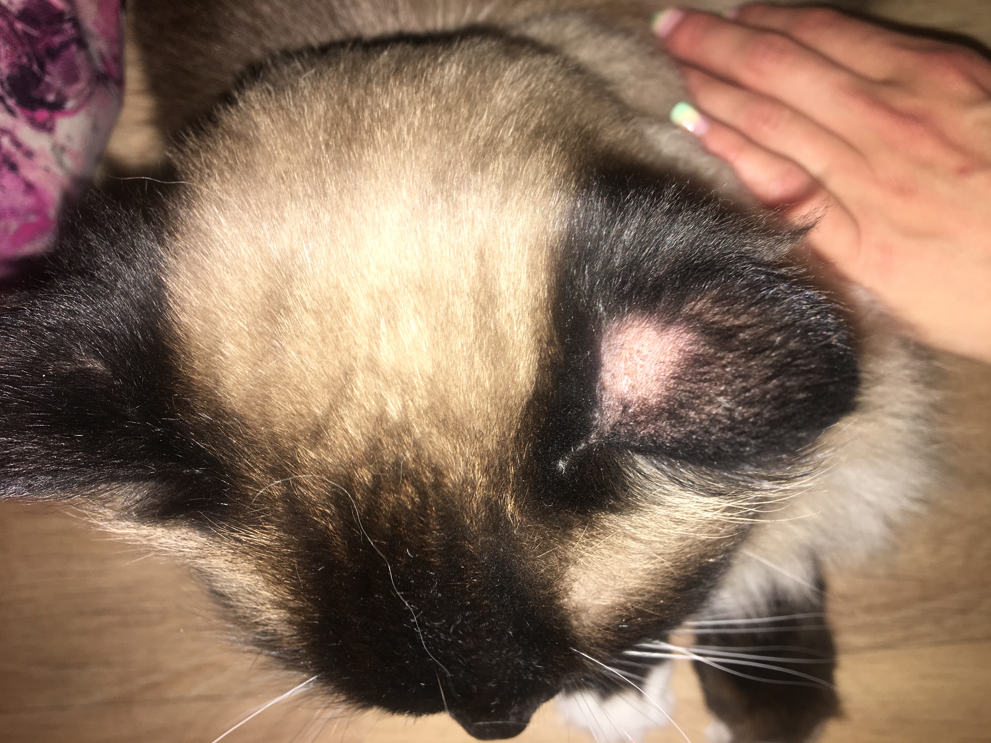 Dobrý den, dnes ráno jsem si všimla, že má 9ti letý kocour ( Ragdoll) na uchu flek bez chlupů, teď jsem přišla večer domů a o dost se to zvětšilo. Byli jsme na veterině na očkováni zhruba před týdnem a před měsícem měl i odběr krve a vše prý v pořádku. Vůbec mě nenapadá co by to mělo být. Příkladám fotografii a mockrát děkuji za odpověď.
