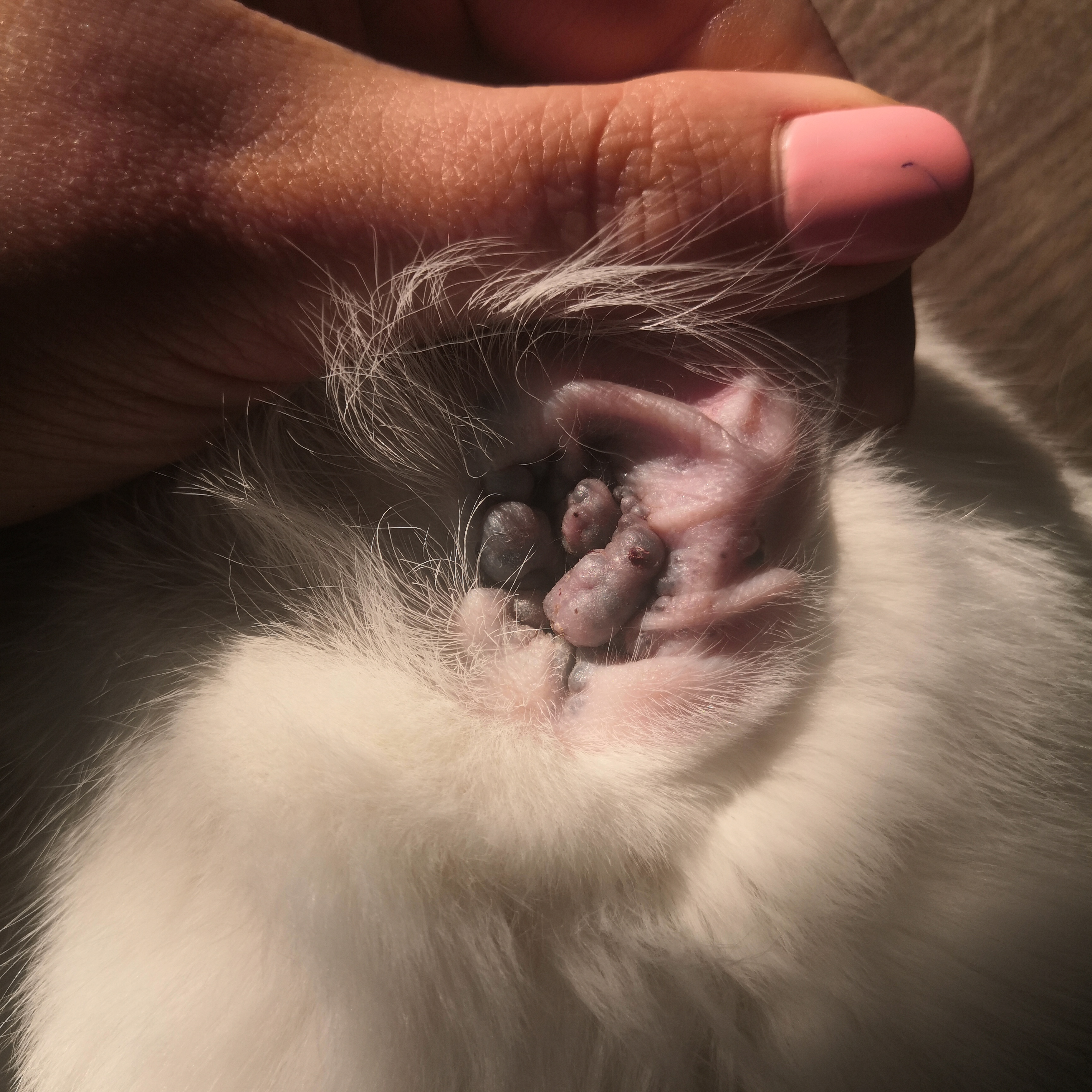 Dobrý den, zavítala k nám kočička a už s námi zůstala. Dobře jí, je mazlivá, nic ji nebolí. Reaguje na zvukové podněty, ale v obou ouškách má něco jako krvavé vřídky viz fotografie. Můžete mi poradit, o co se zřejmě jedná a jaká bude pravděpodobně léčba. Děkuji