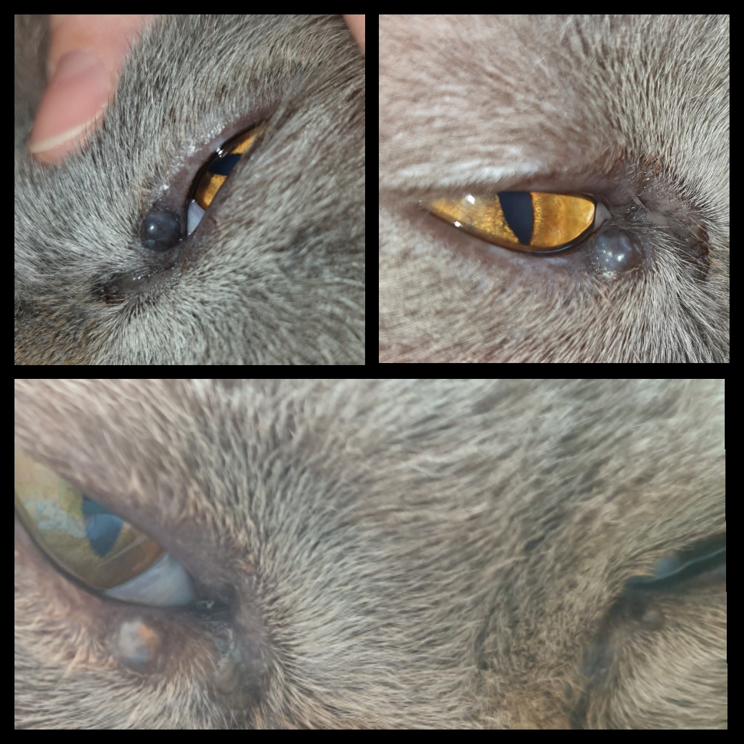 Výrůstky na dolním víčku oka u kocoura