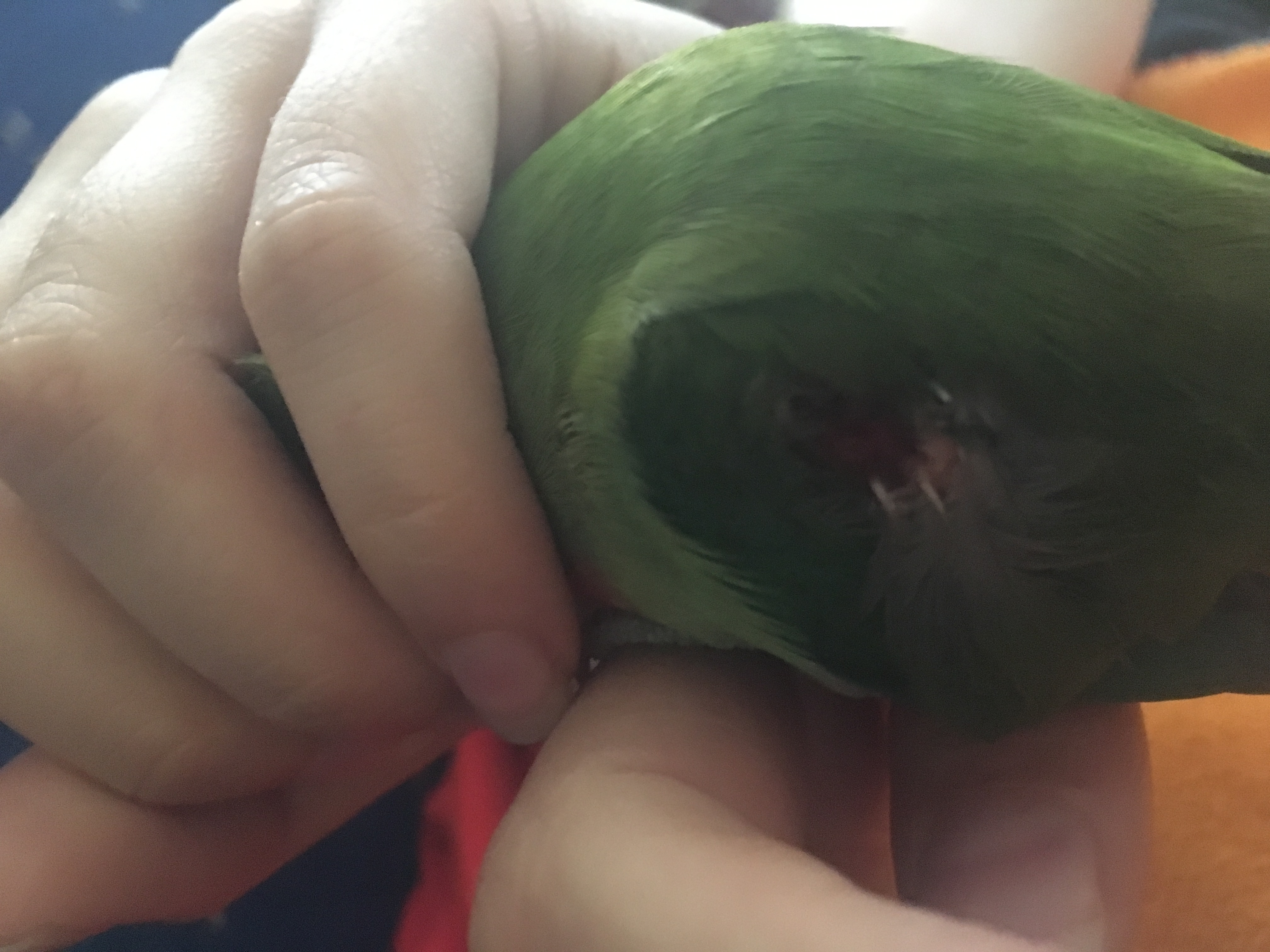 Dobry den,nejlepe zabranite sebezranovani pomoci plastoveho limce,existuje i malicky pro ptaky,nasadi se kolem krku, pokud byste meli problem jej sehnat, muzete si takovy trychtyr vyrobit po domacku napr.z ustrizeneho hrdla pet lahve. Pozor ovsem na ostre okraje, doporucuji je oblepit textilni naplasti. Ranu je nutne udrzivat v cistote, dezinfikovat, pripadne potirat hojivou masti.